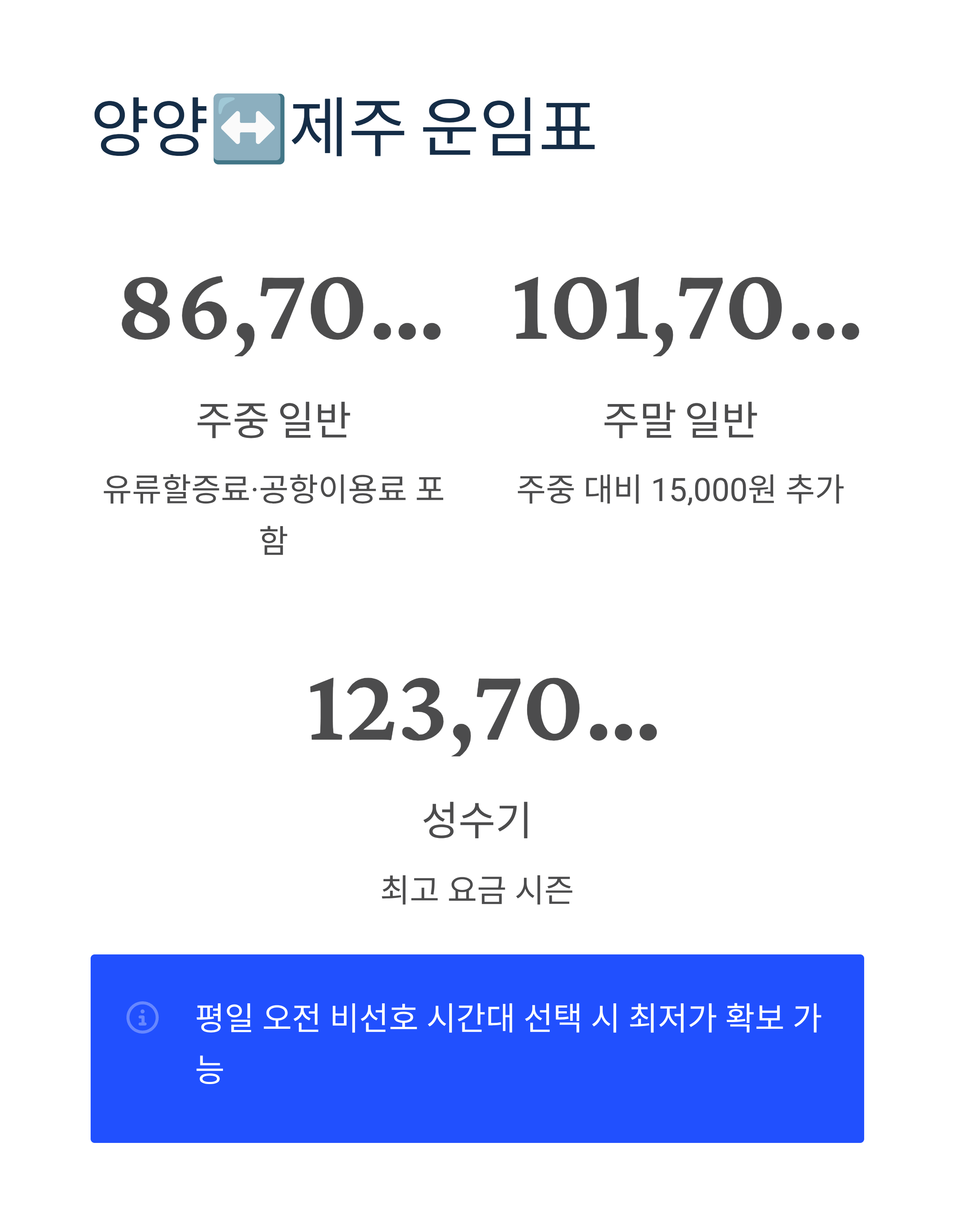 ✅ 팁: 평일 오전 비선호 시간대를 선택하면 저렴한 요금으로 항공권을 확보할 수 있습니다.