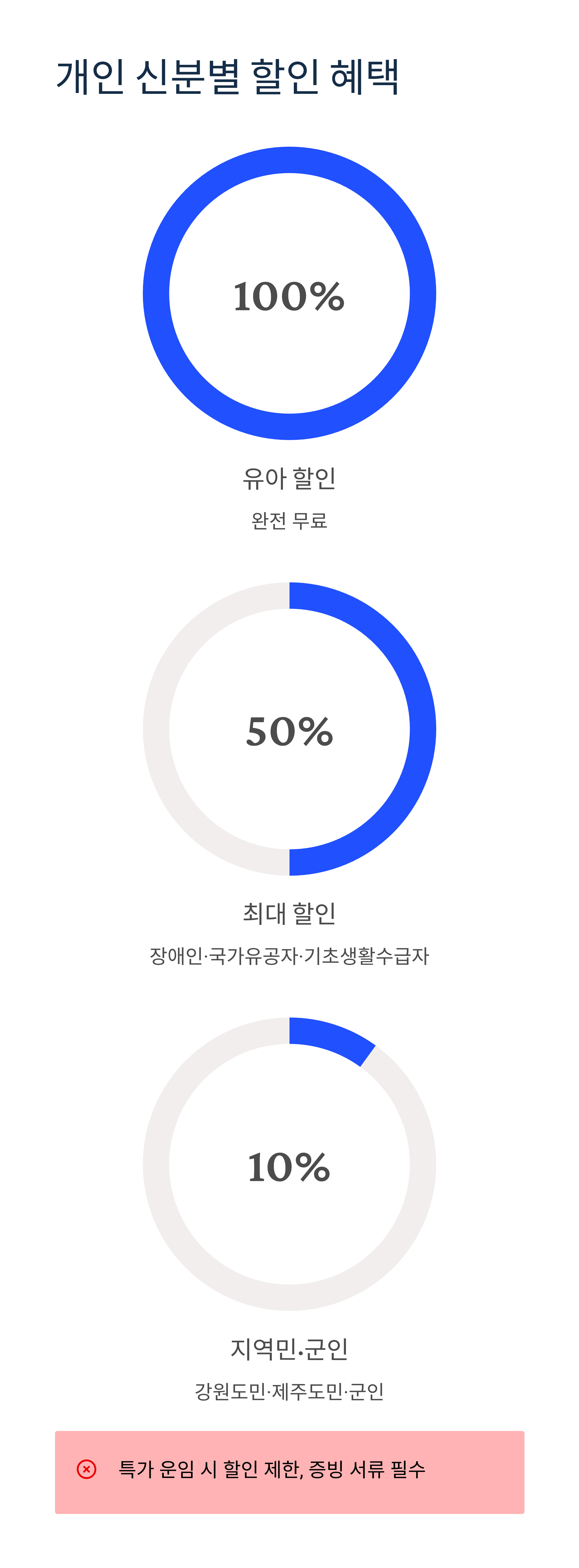 ⚠️ 단, 특가 운임에는 일부 할인 적용이 제한되며 반드시 증빙 서류가 필요합니다.