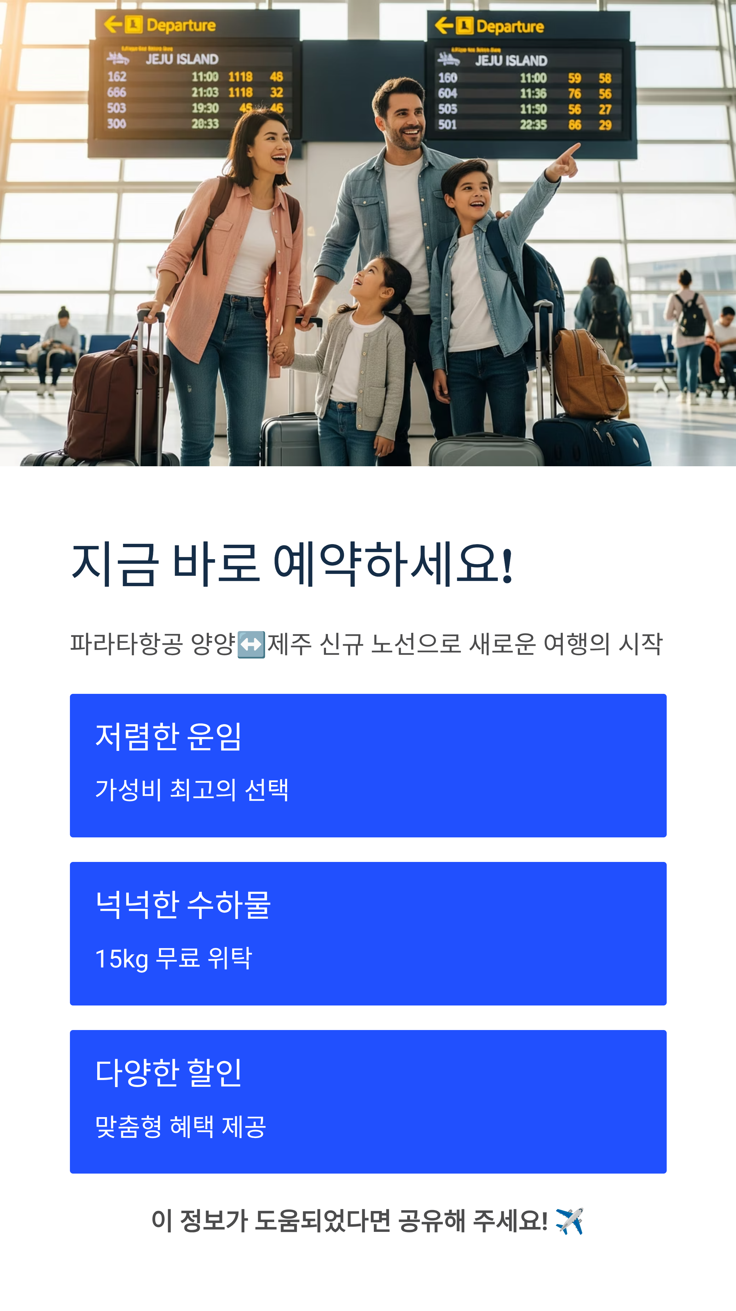 제주 여행을 계획 중이라면, 지금 바로 파라타항공 공식 홈페이지나 모바일 앱을 통해 예약을 진행해 보세요. ✈️