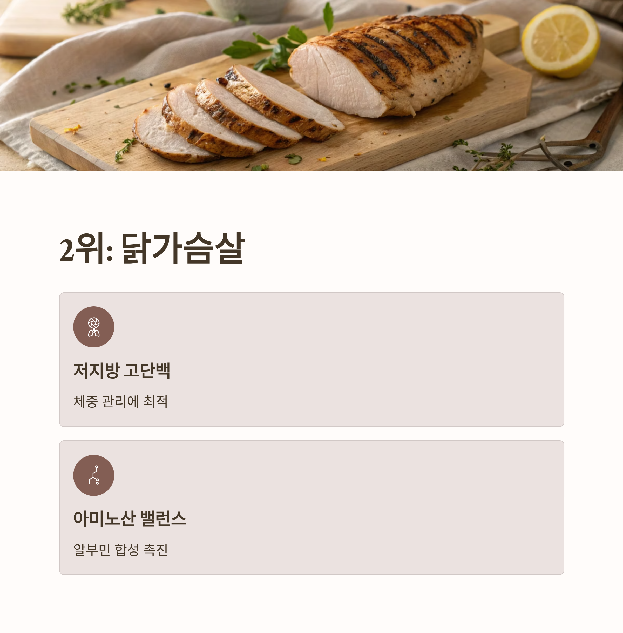 특히 달걀흰자, 닭가슴살, 두부, 생선류를