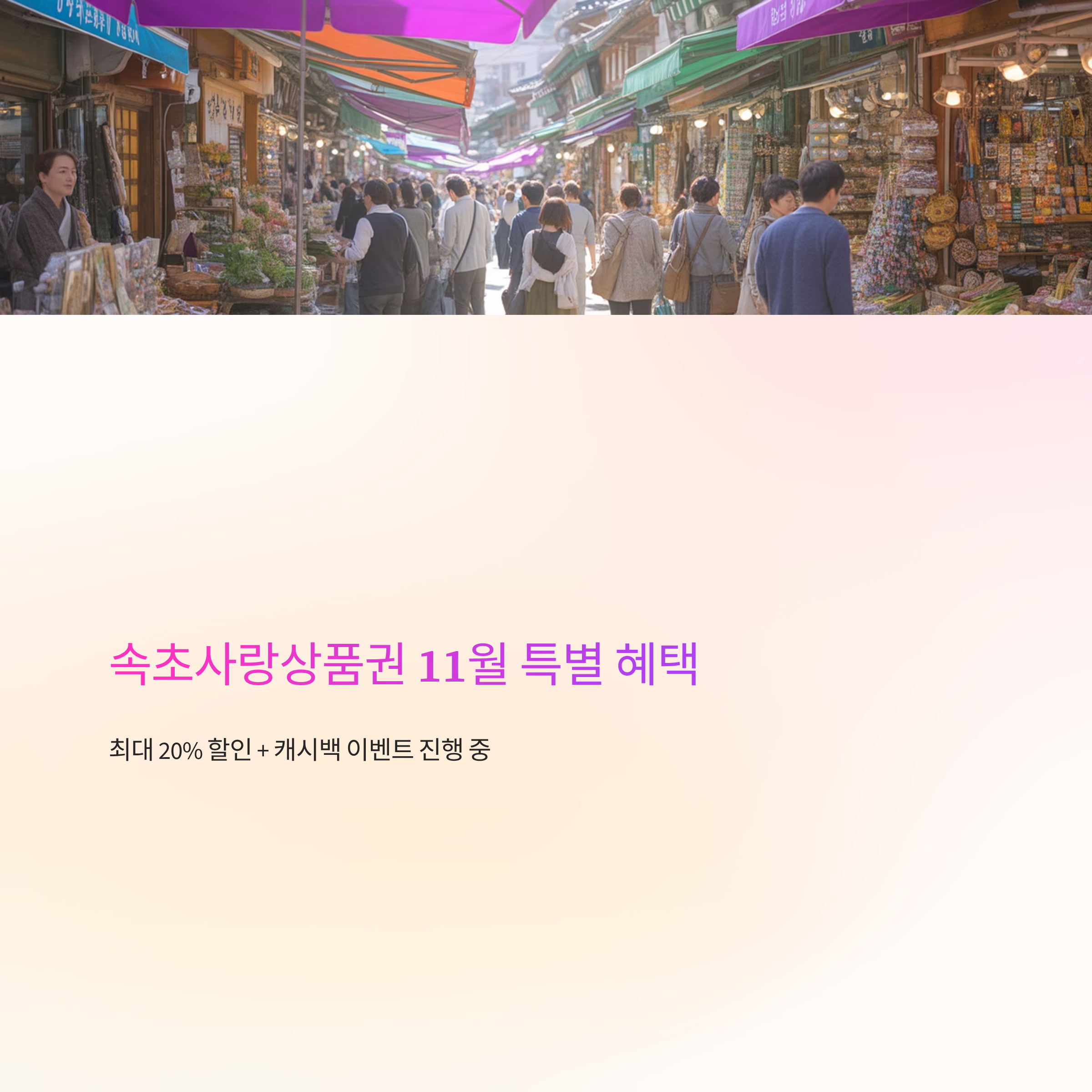 속초시가 지역경제 활성화를 위해 운영 중인 속초사랑상품권이 2025년 11월에도 할인 판매를 이어갑니다. 특히 이번 달은 코리아 그랜드 페스티벌과 연계된 특별 프로모션이 함께 진행되어 최대 20퍼센트 가까운 혜택을 받을 수 있습니다. 이번 글에서는 속초사랑상품권의 11월 판매 일정, 구매 방법, 캐시백 이벤트, 사용처까지 자세히 정리했습니다.