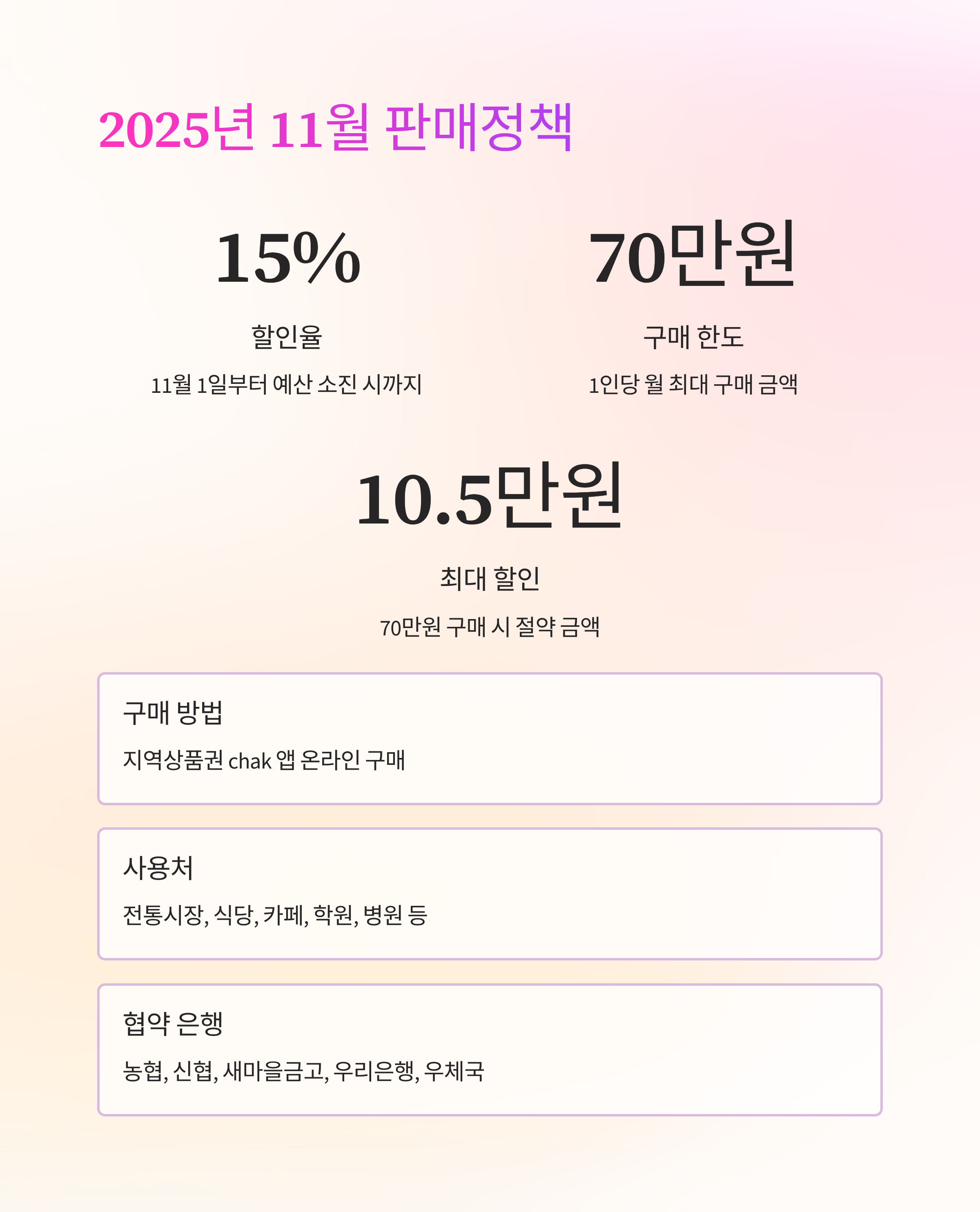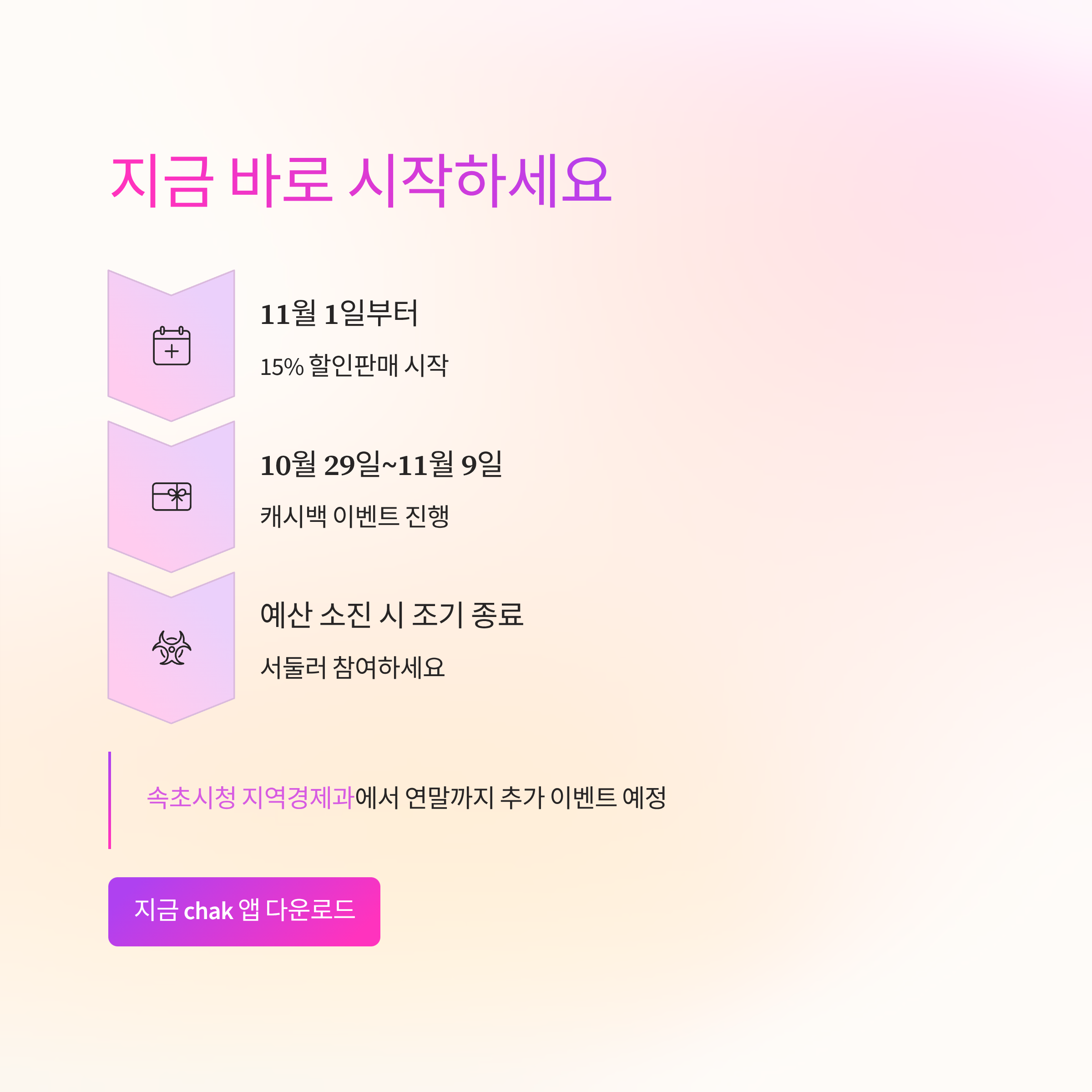 속초사랑상품권은 2025년 11월부터 15퍼센트 할인판매가 진행되고, 10월 말부터는 코리아 그랜드 페스티벌 기념으로 캐시백 이벤트가 함께 열립니다.