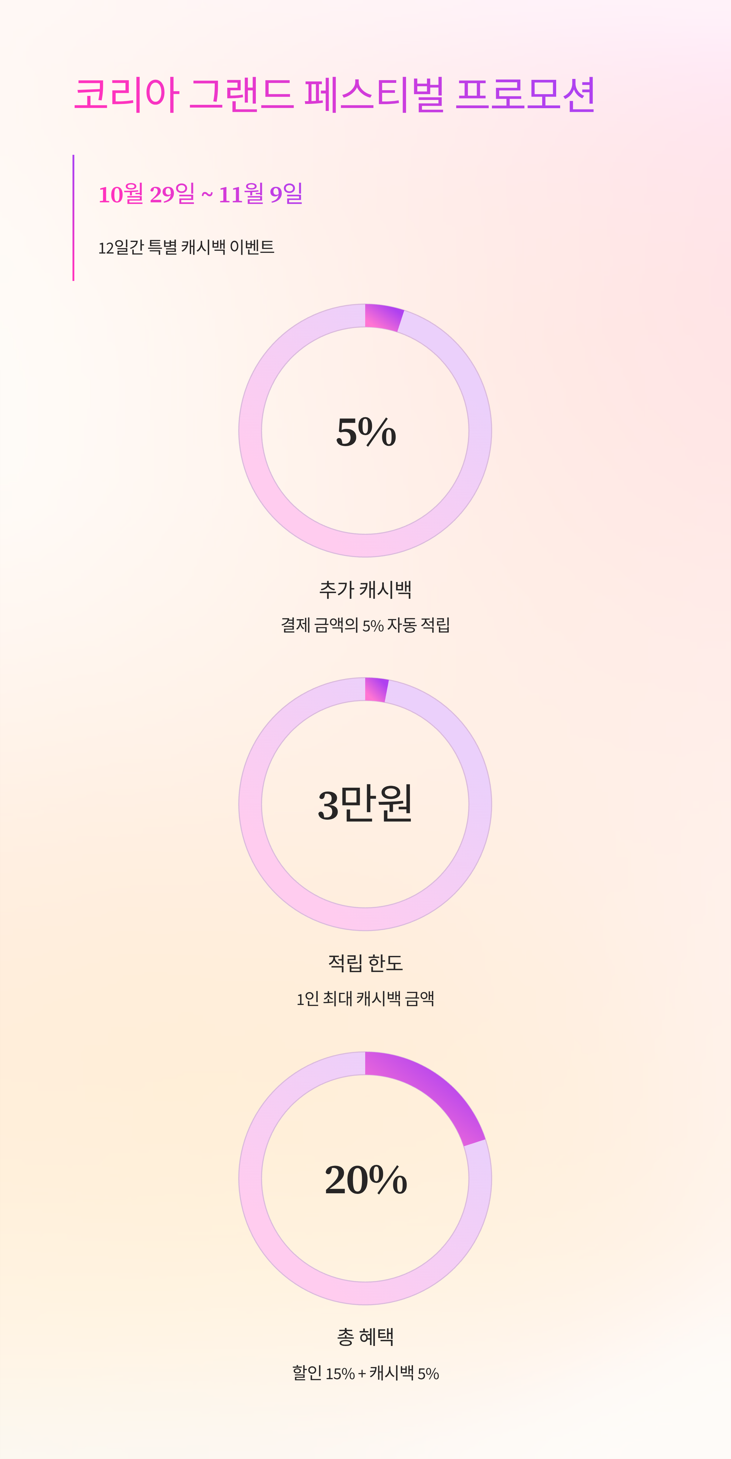 코리아 그랜드 페스티벌 기간인 10월 29일부터 11월 9일 사이에 집중적으로 사용하면 캐시백을 받을 수 있습니다.