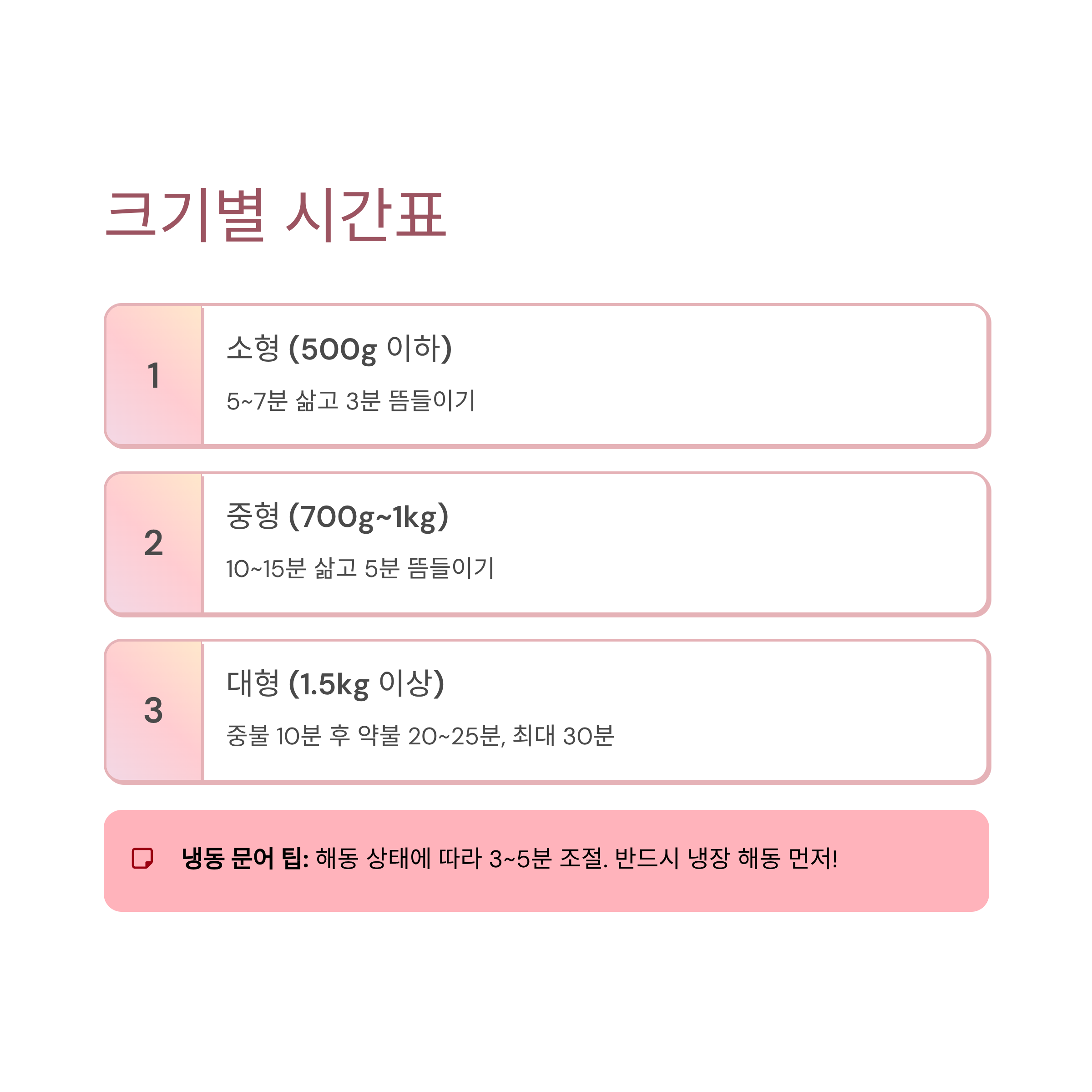 3. 크기별 문어 삶는 시간 가이드