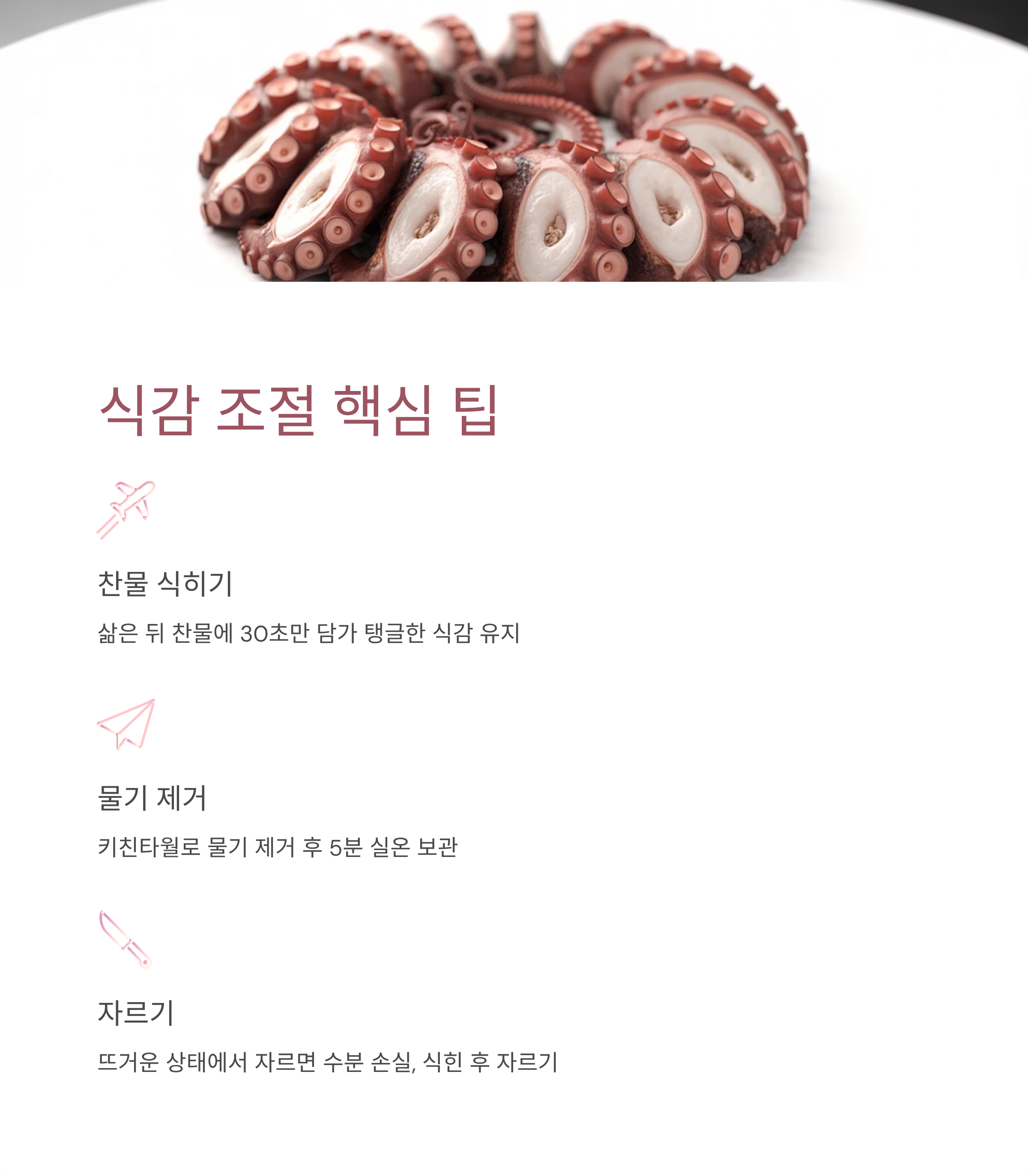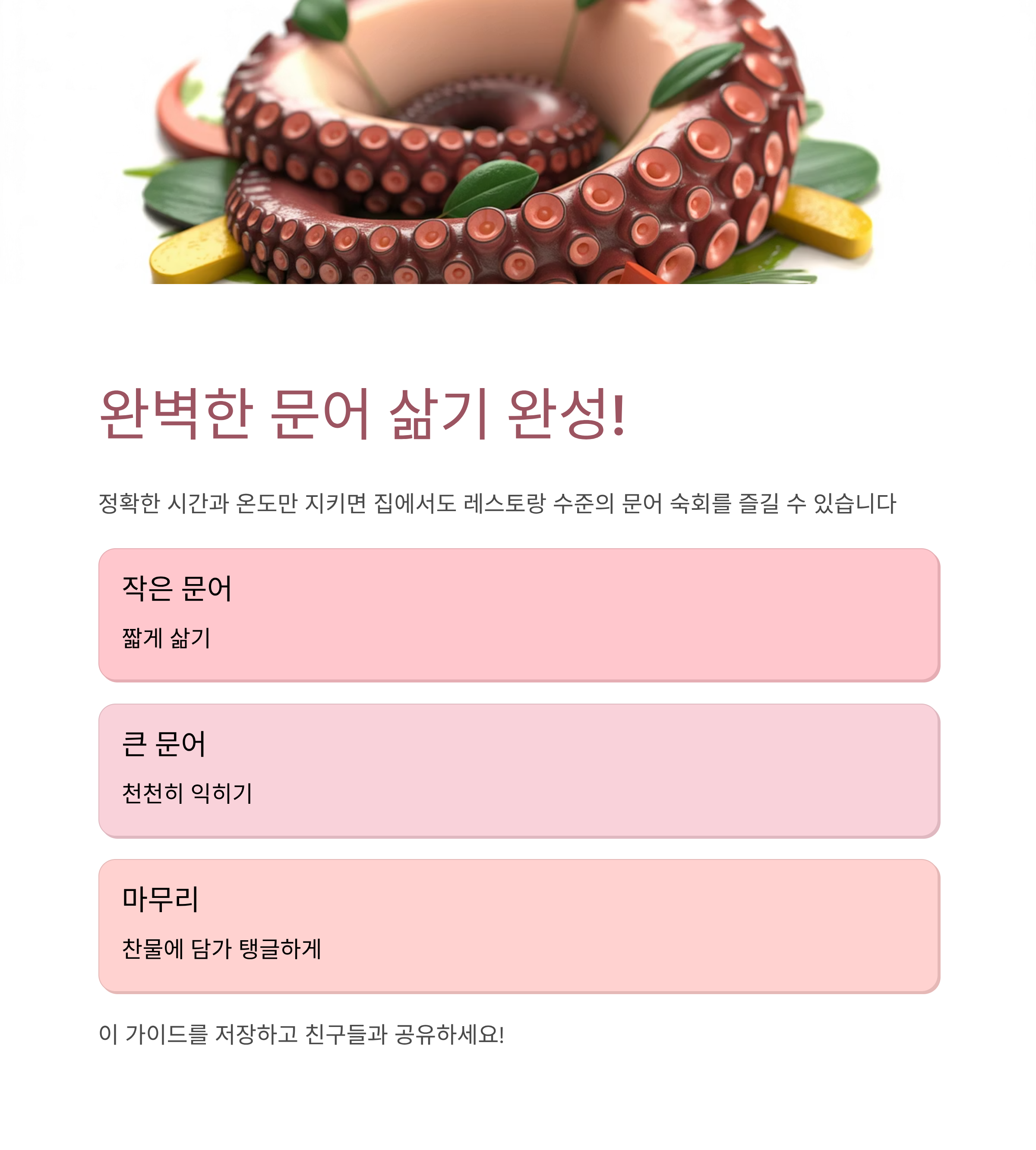 이 글에서 알려드린 기준만 지키면, 집에서도 레스토랑 수준의 문어 숙회를 즐길 수 있습니다.