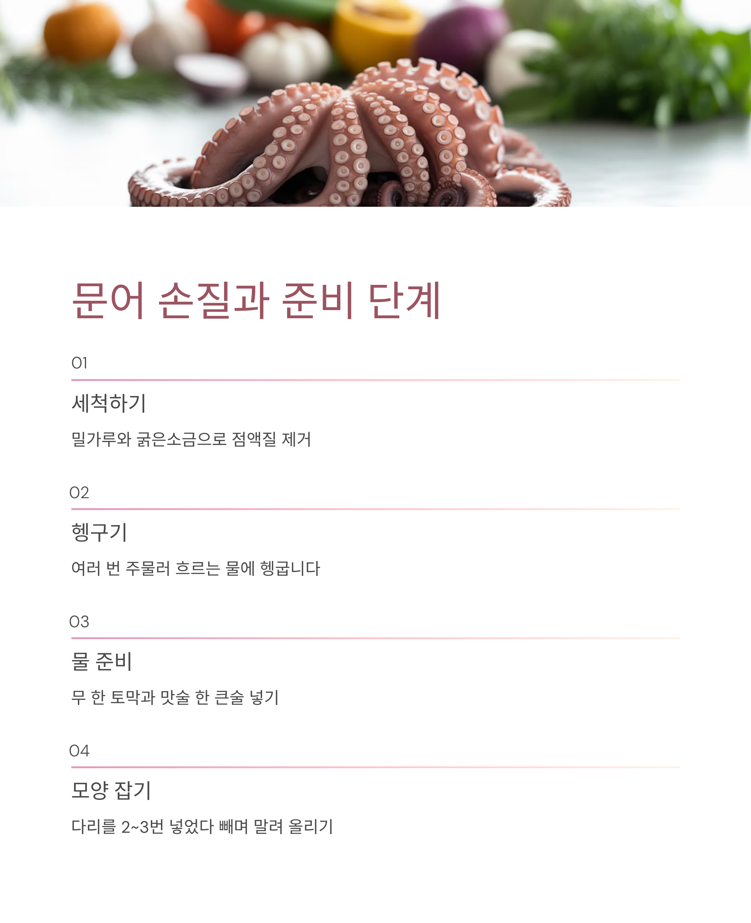 집에서도 전문가처럼 문어 숙회를 즐길 수 있도록 단계별로 알려드립니다.