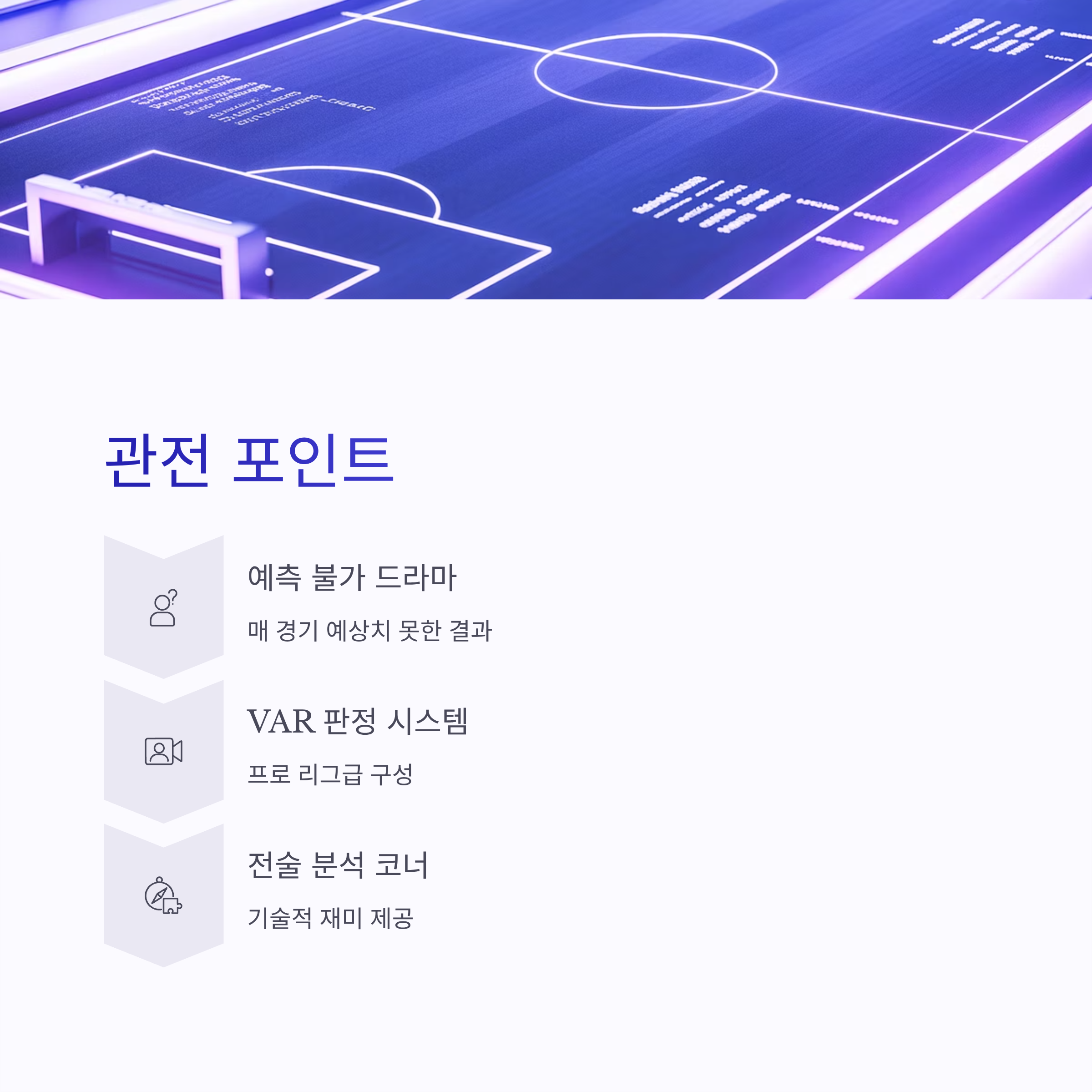 또한 이번 시즌부터는 VAR 판정 시스템과 전술 분석 코너가 도입되어 실제 프로 리그 못지않은 구성을 보여줍니다.