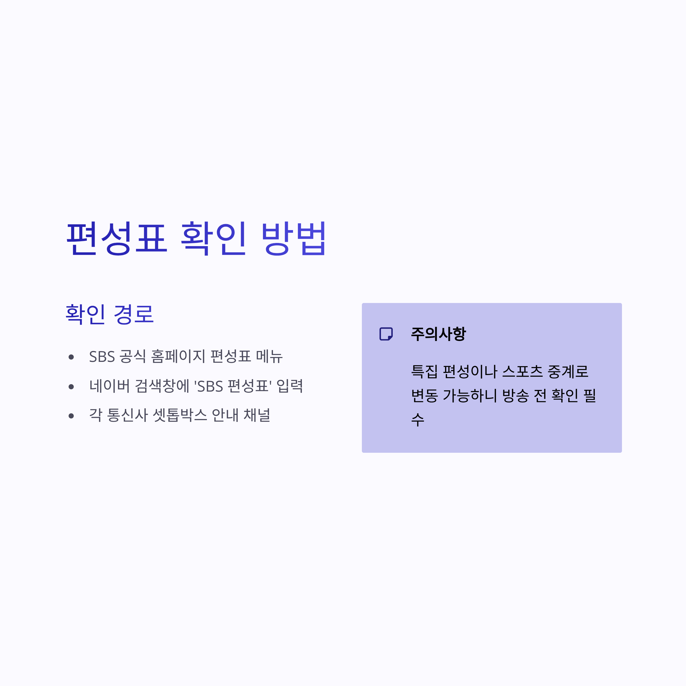 확인 경로 SBS 공식 홈페이지 편성표 메뉴