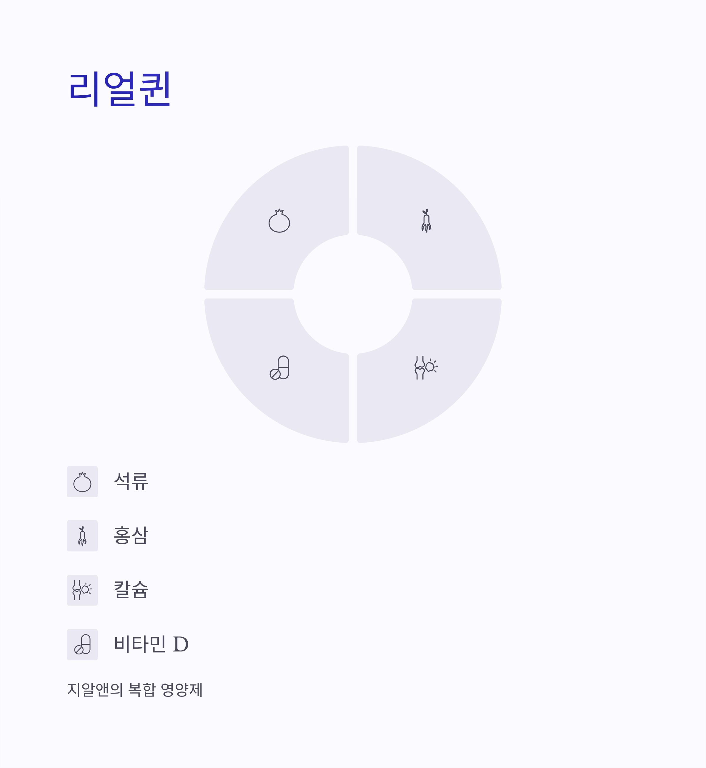 석류, 홍삼, 칼슘, 비타민 D가 모두 포함된 복합 영양제입니다.