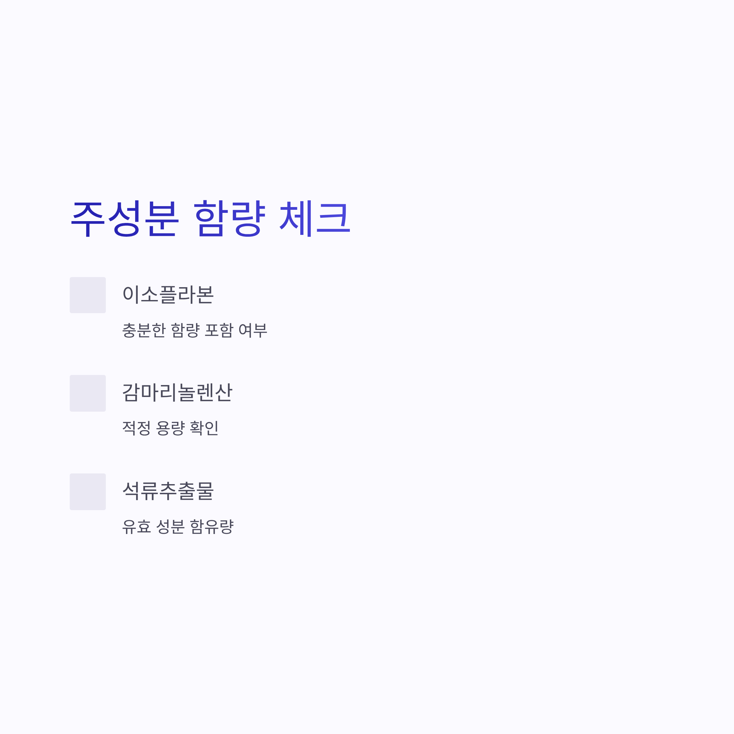이소플라본, 감마리놀렌산, 석류추출물 등의 함량이 충분히 포함되어 있는지 확인합니다.