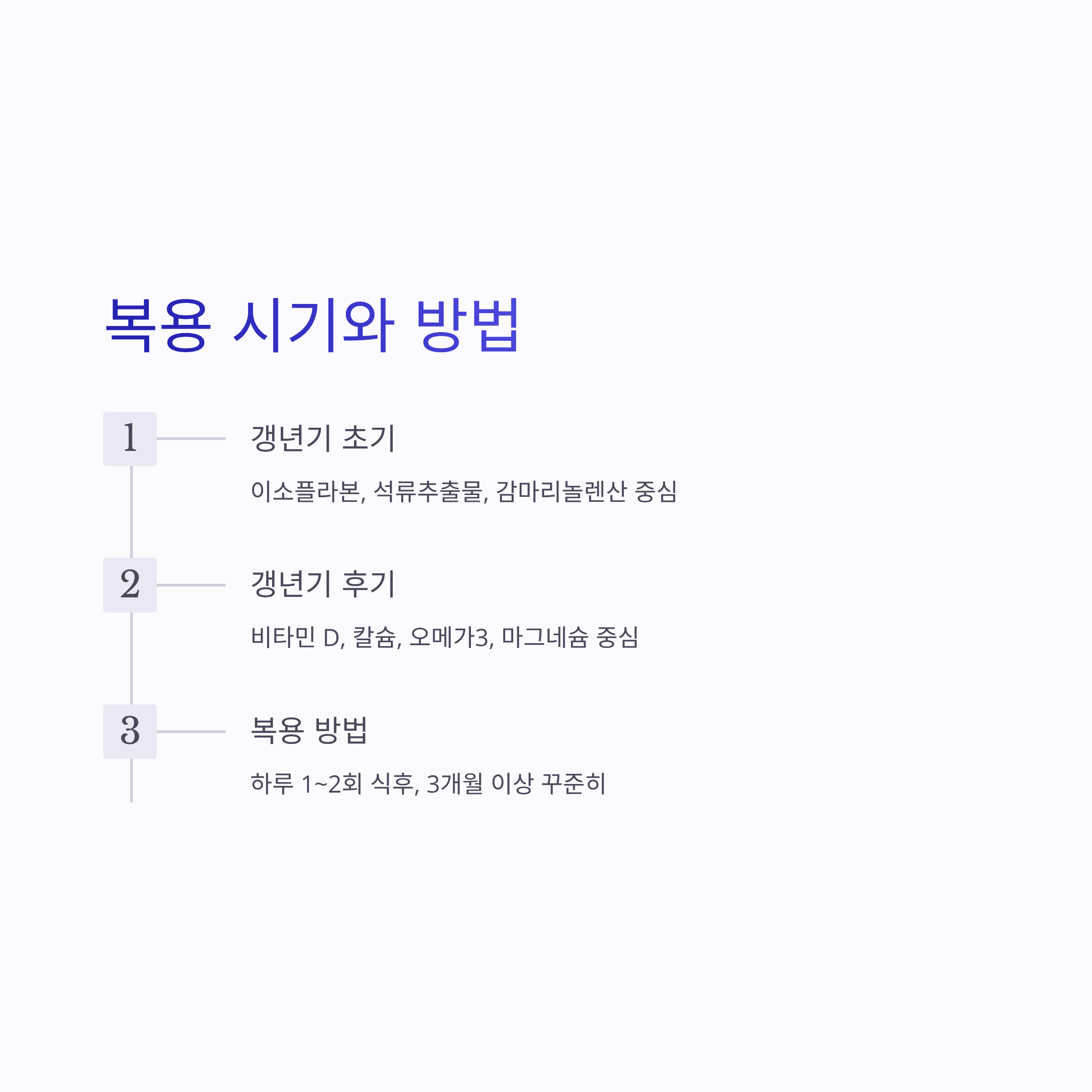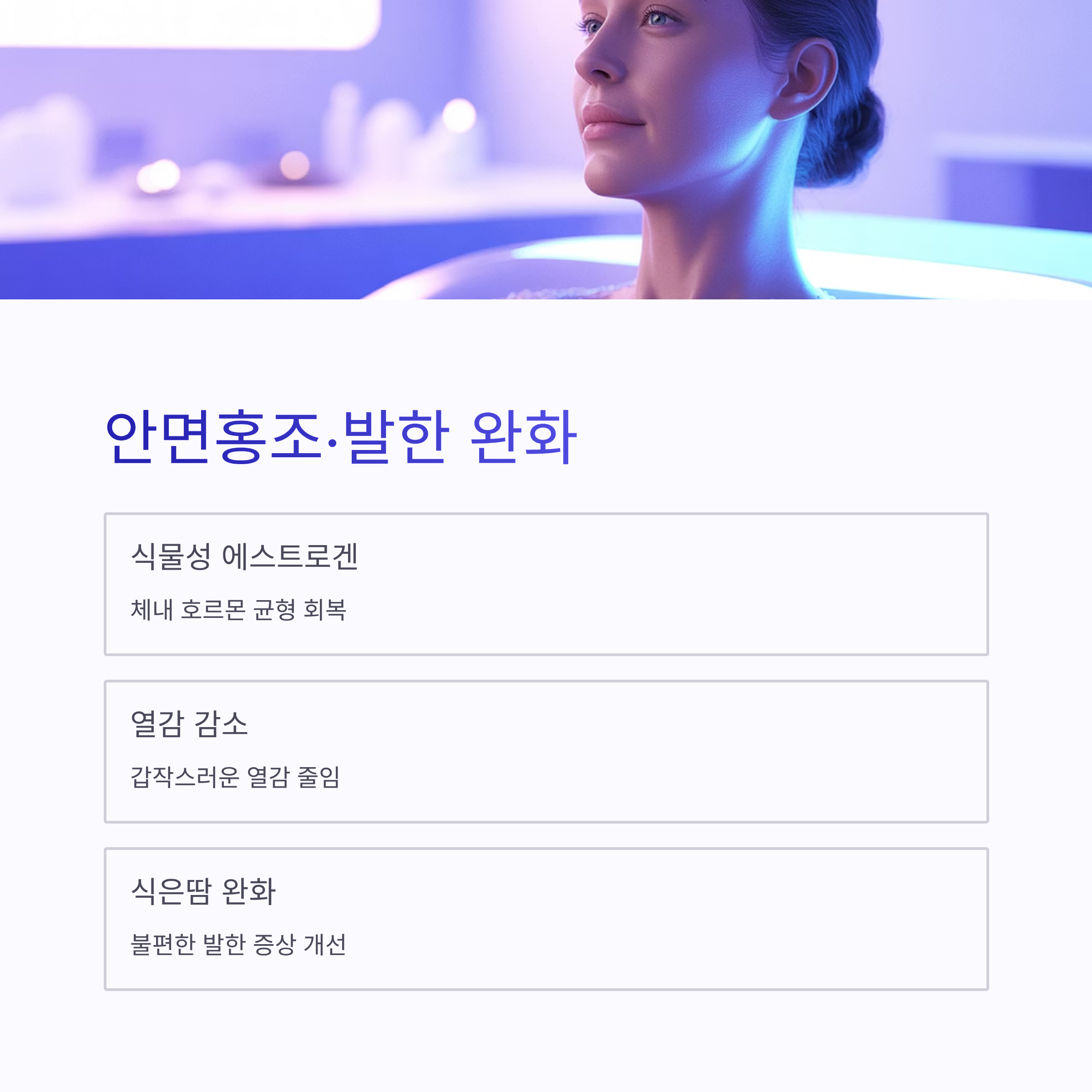 이는 여성호르몬 감소로 인한 안면홍조, 불면, 골밀도 저하를 개선하는 데 도움이 됩니다.