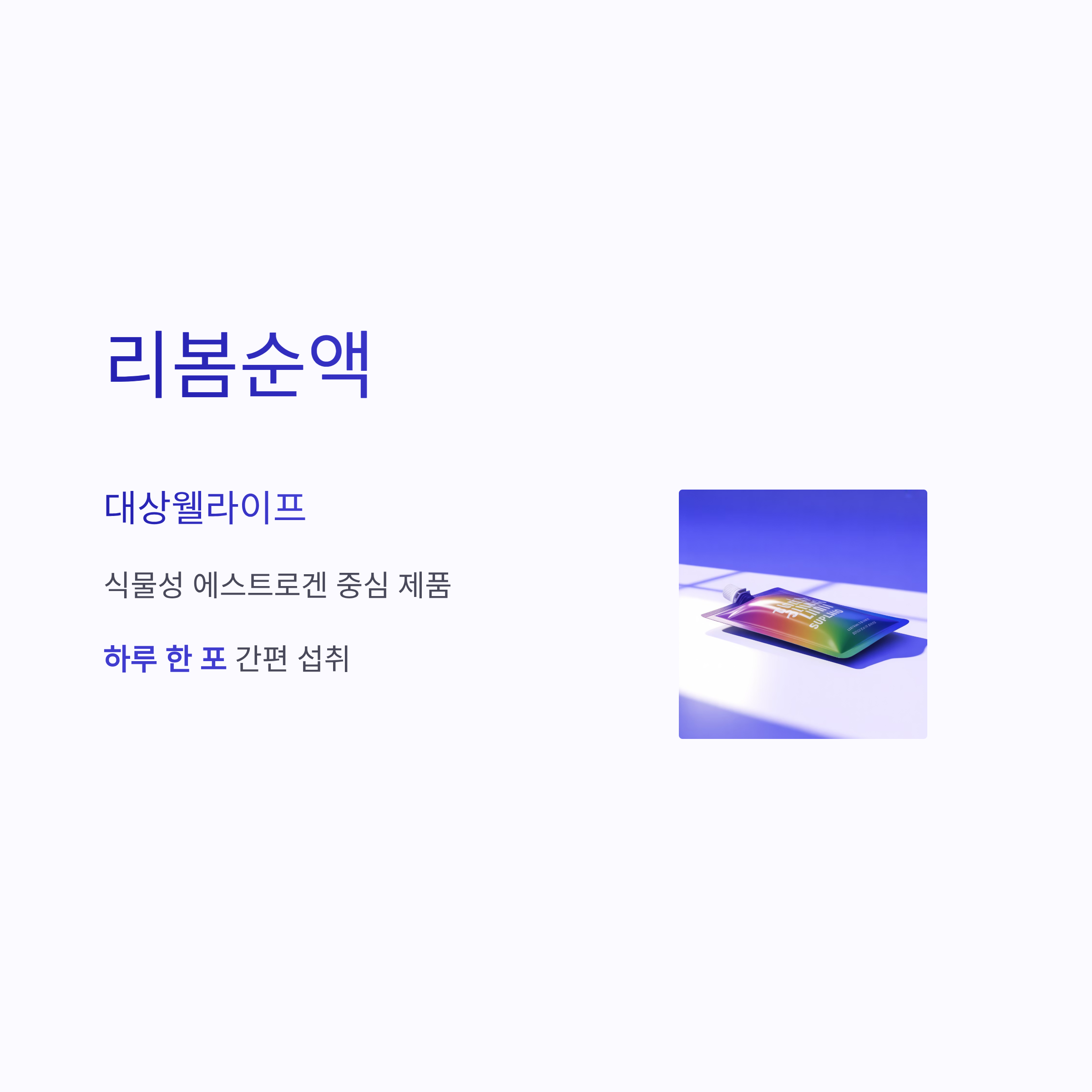 식물성 에스트로겐 중심 제품으로, 하루 한 포 간편하게 섭취 가능합니다.