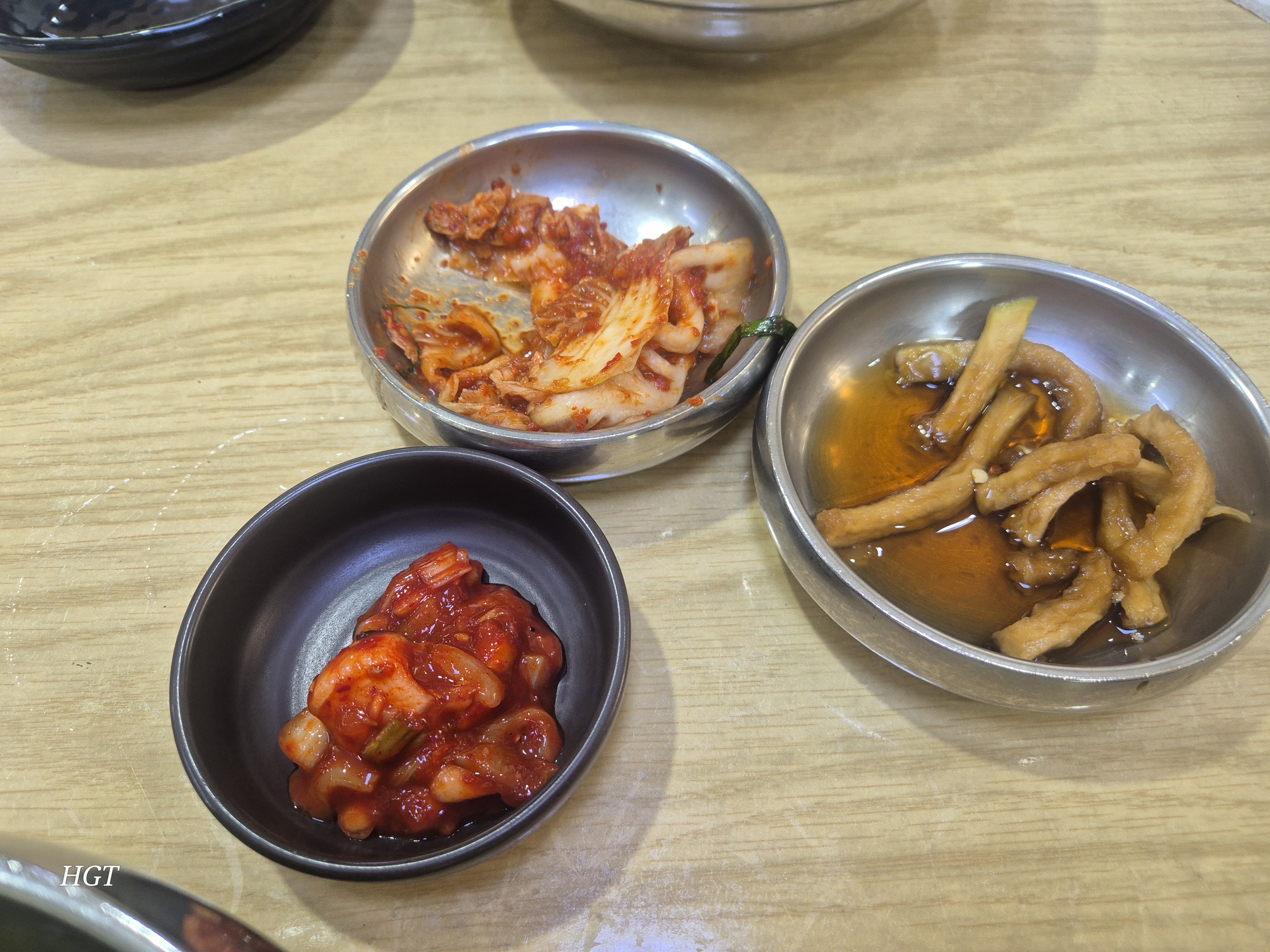 기본 반찬으로는 배추김치, 열무김치, 오이무침 등이 제공되며, 미역국과 공깃밥도 셀프로 리필 가능하다.