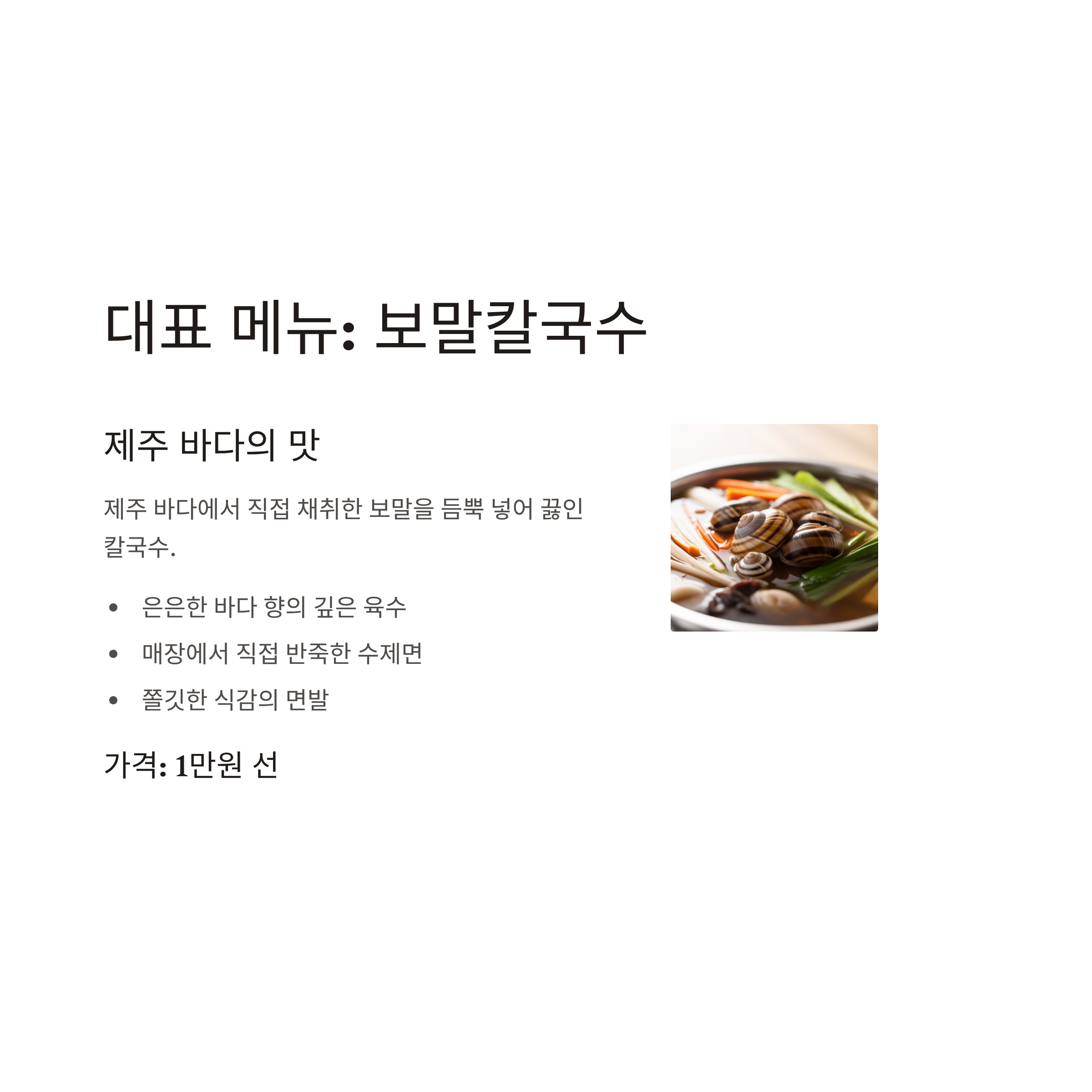 신선한 보말, 수제면, 진한 육수의 조화로 제주만의 풍미를 느끼고 싶다면 이곳을 꼭 방문해보길 추천한다.