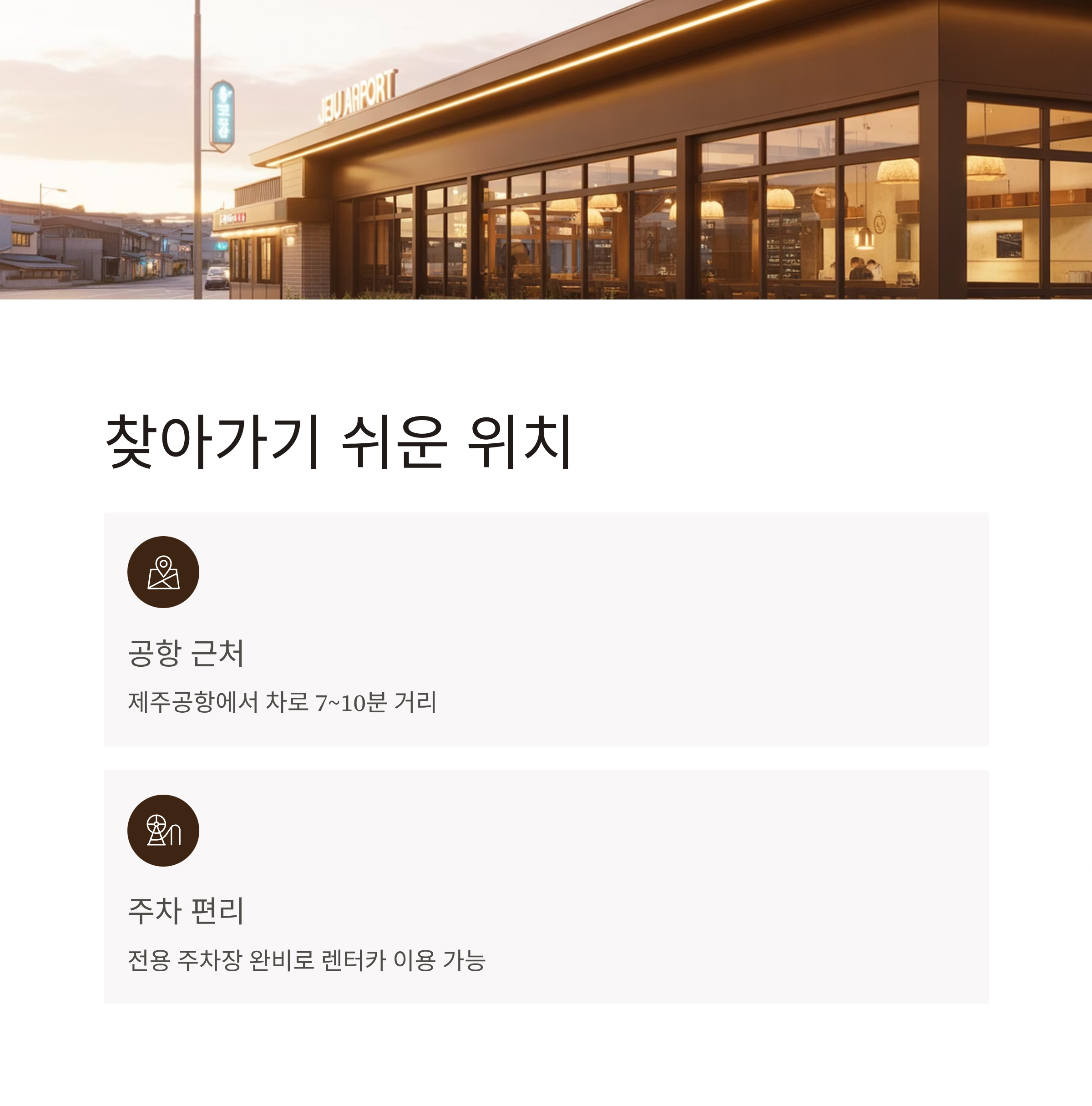 공항과 가깝고 주차 편의가 좋아 여행객에게 최적의 위치를 자랑한다.