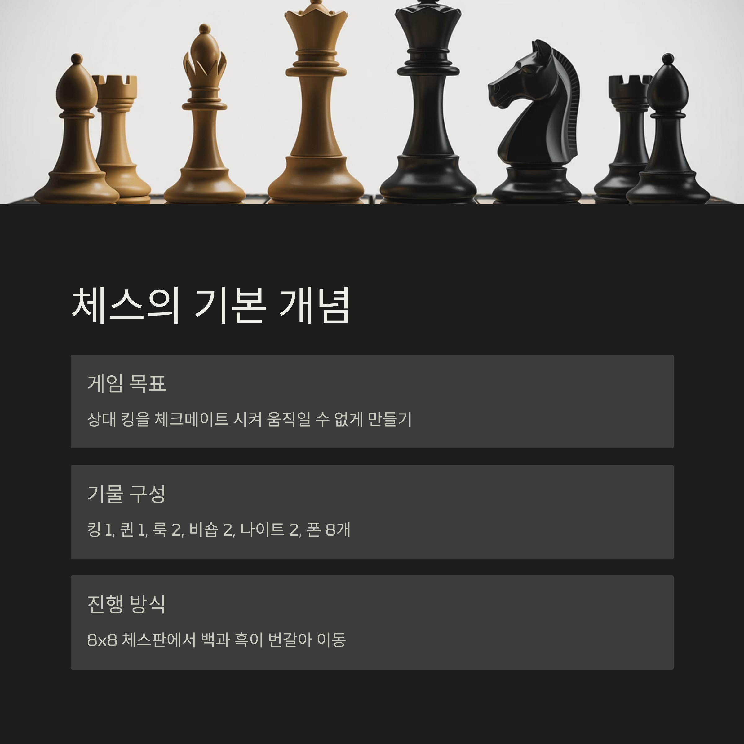 체스는 단순한 보드게임이 아니라 심리전, 계산, 창의력이 어우러진 두뇌 전쟁이다.