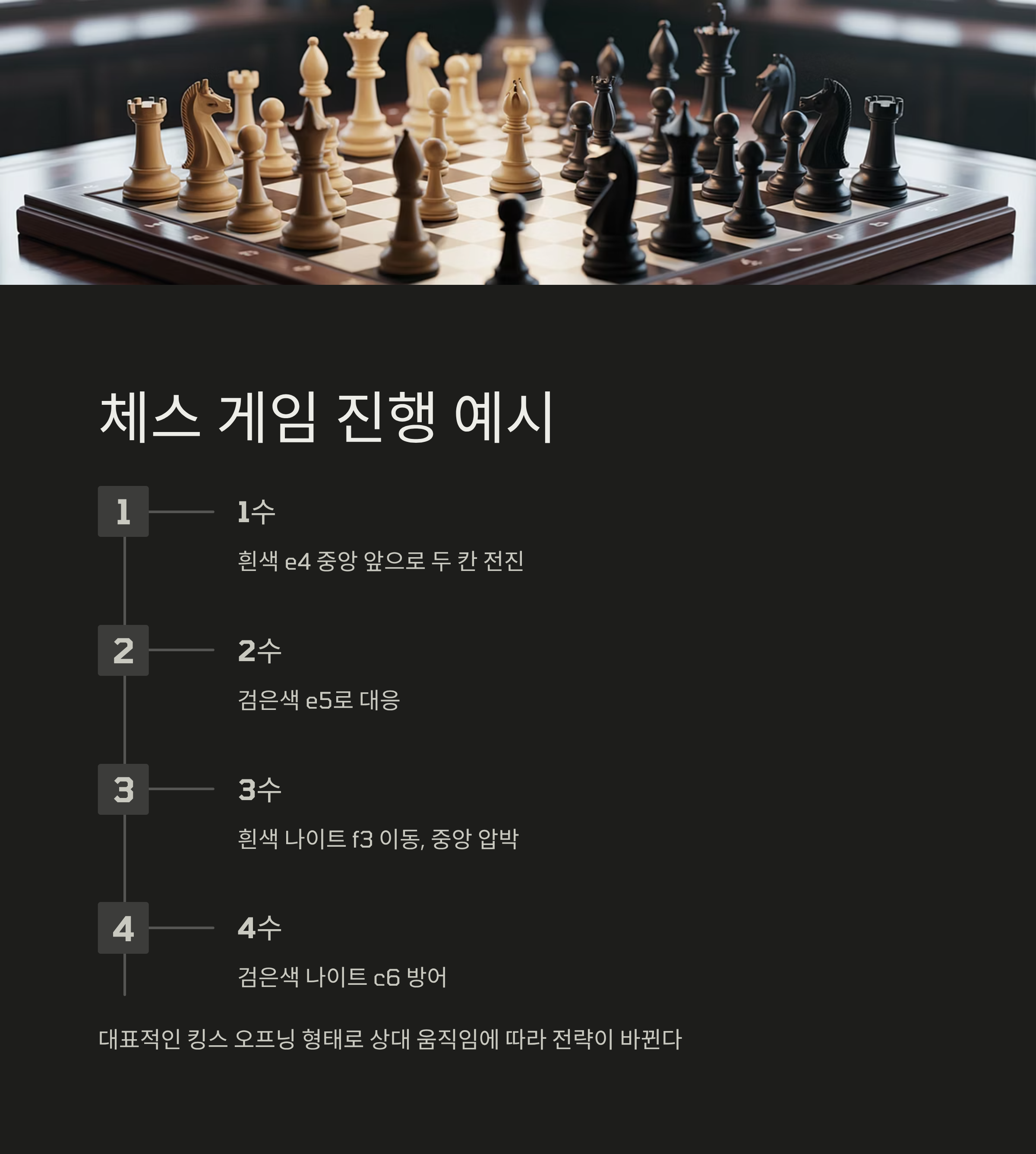 체스는 패턴 게임이 아니며, 상대의 움직임에 따라 언제든 전략이 바뀐다.