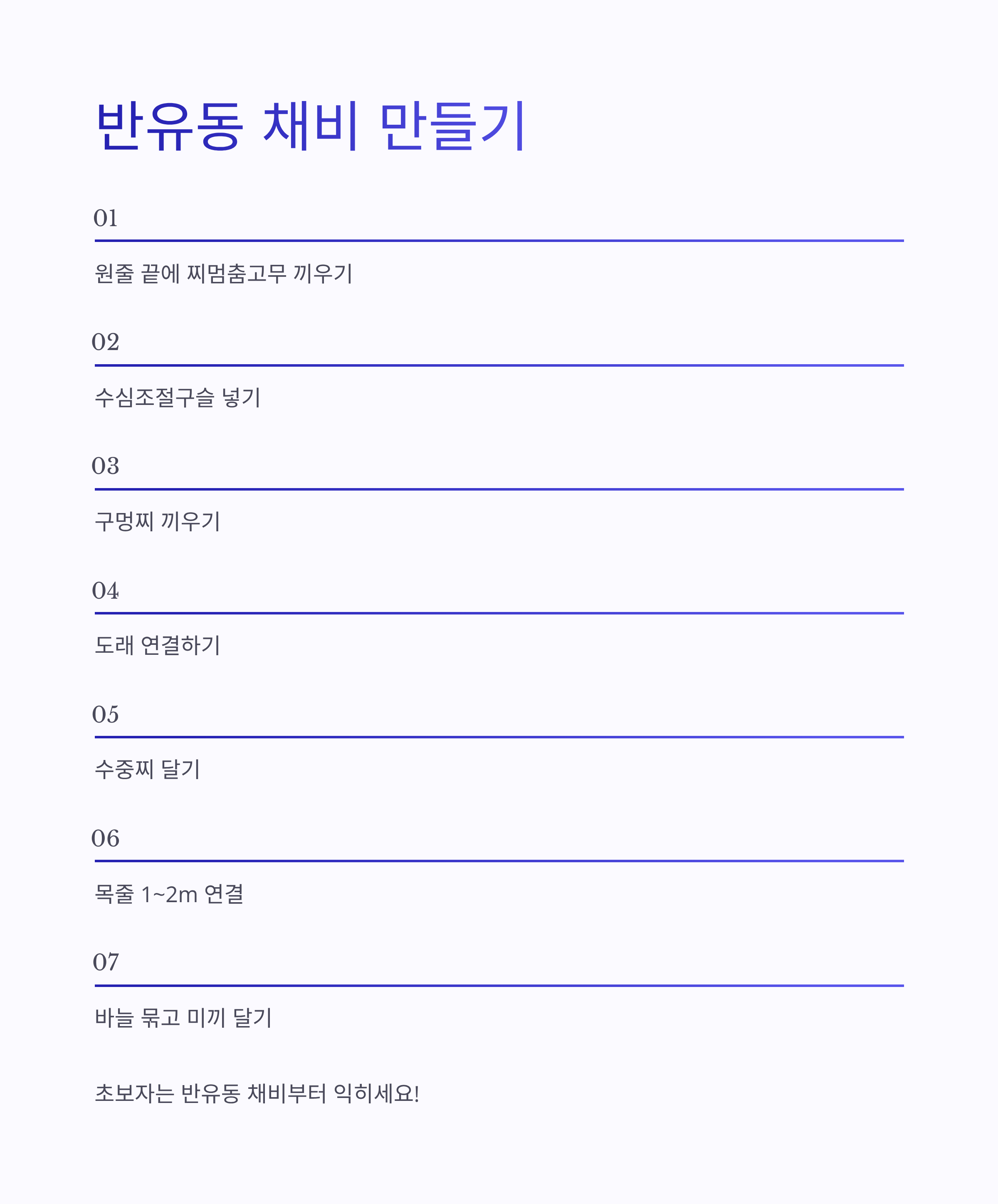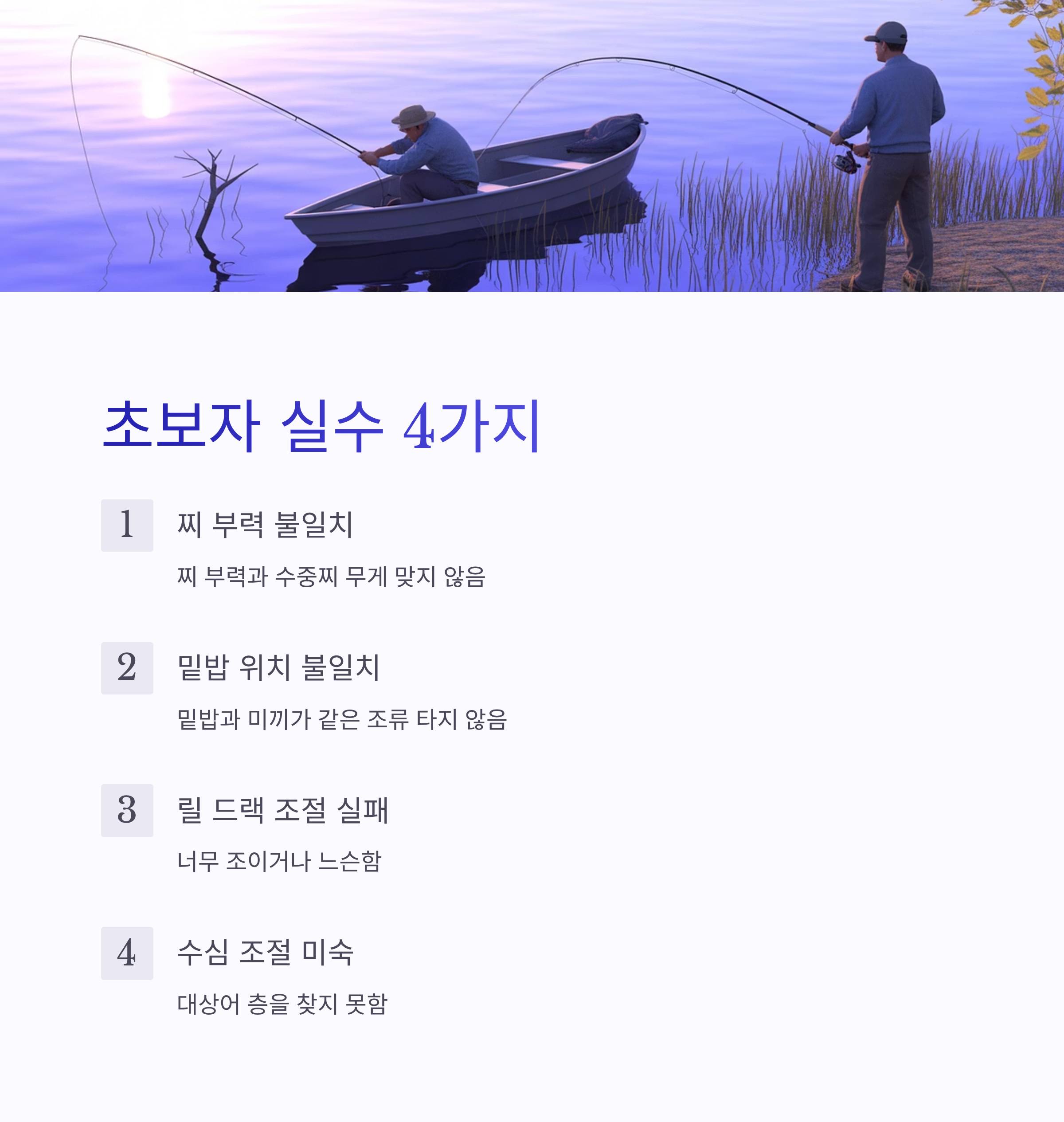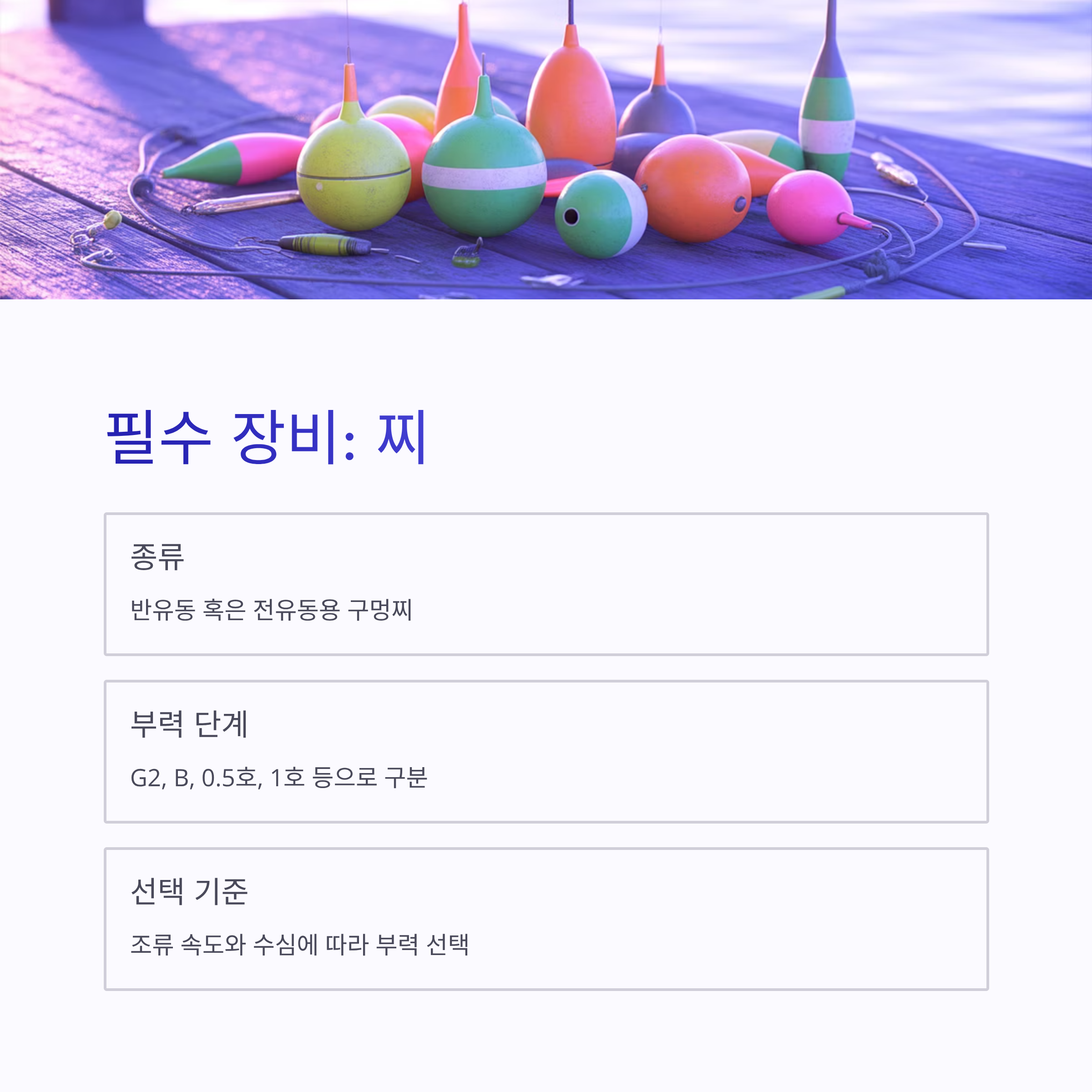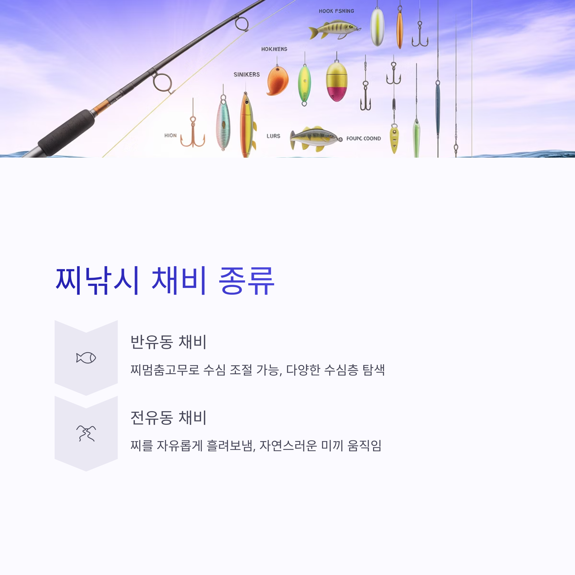 이 방식은 수심을 자유롭게 조절할 수 있어 조류가 빠르거나 수심이 깊은 곳에서 효과적이다. 초보자라면 반유동 채비부터 익히는 것이 좋다.