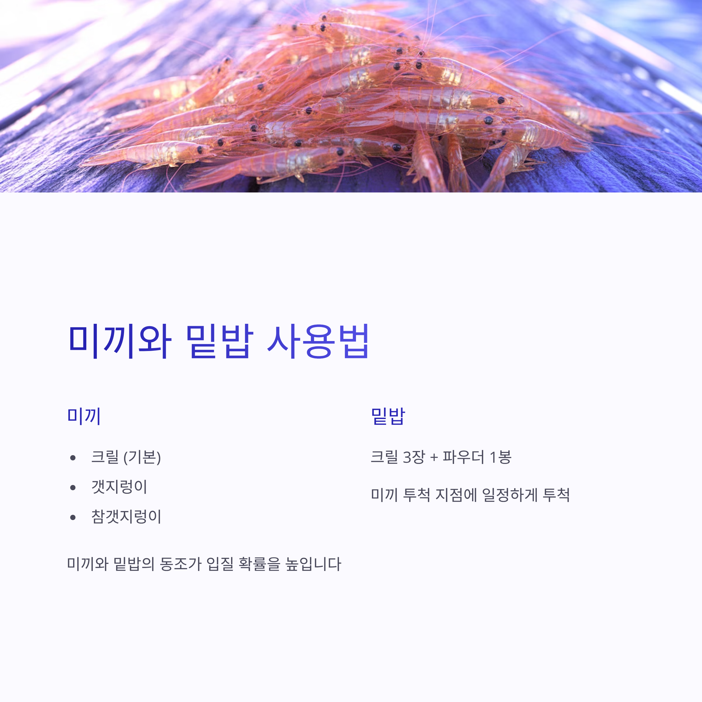 미끼와 밑밥의 동조가 맞아야 입질 확률이 크게 높아진다. 이 원리를 이해하는 것이 찌낚시의 핵심이다.