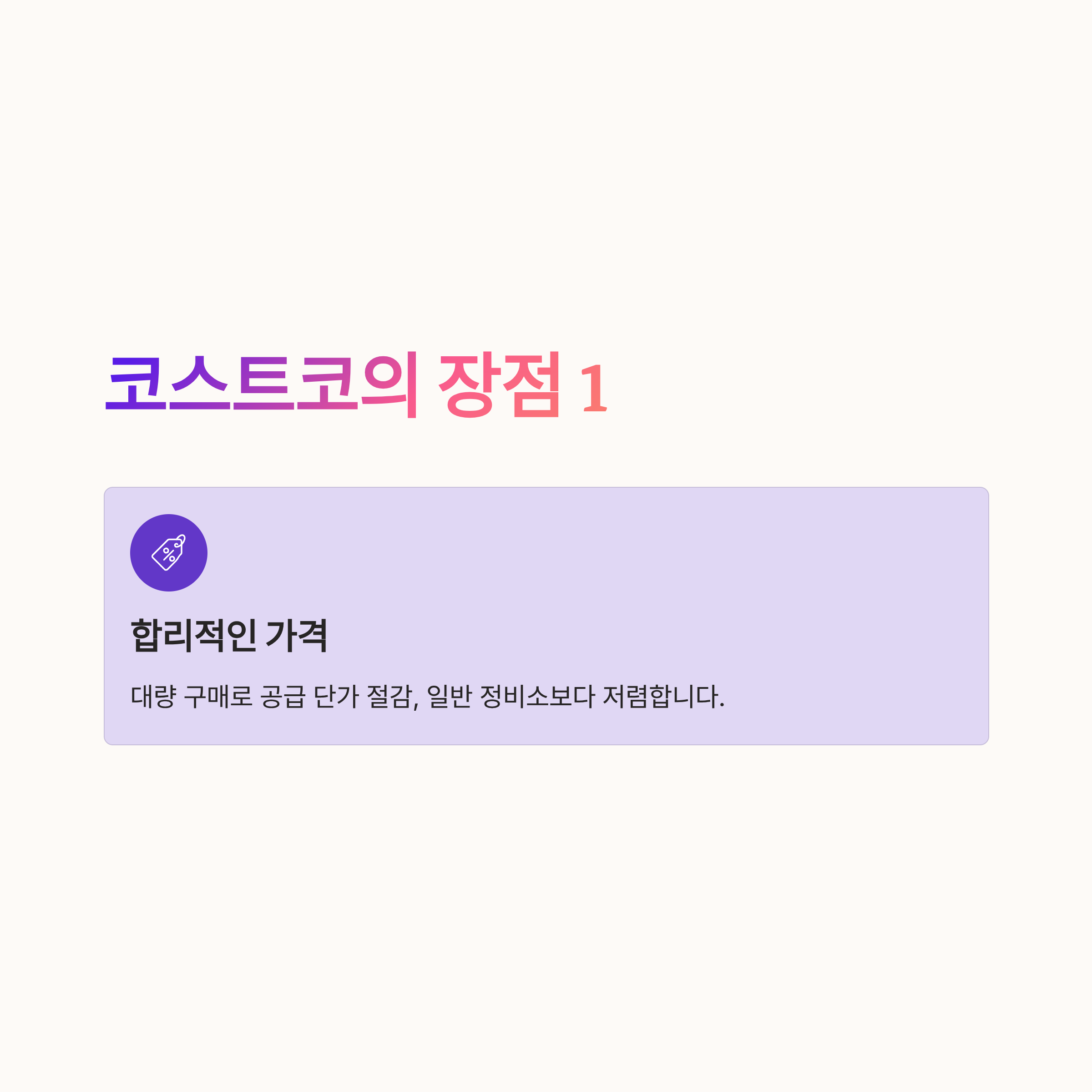 대량 구매로 인한 공급 단가 절감으로 일반 정비소보다 저렴하다.