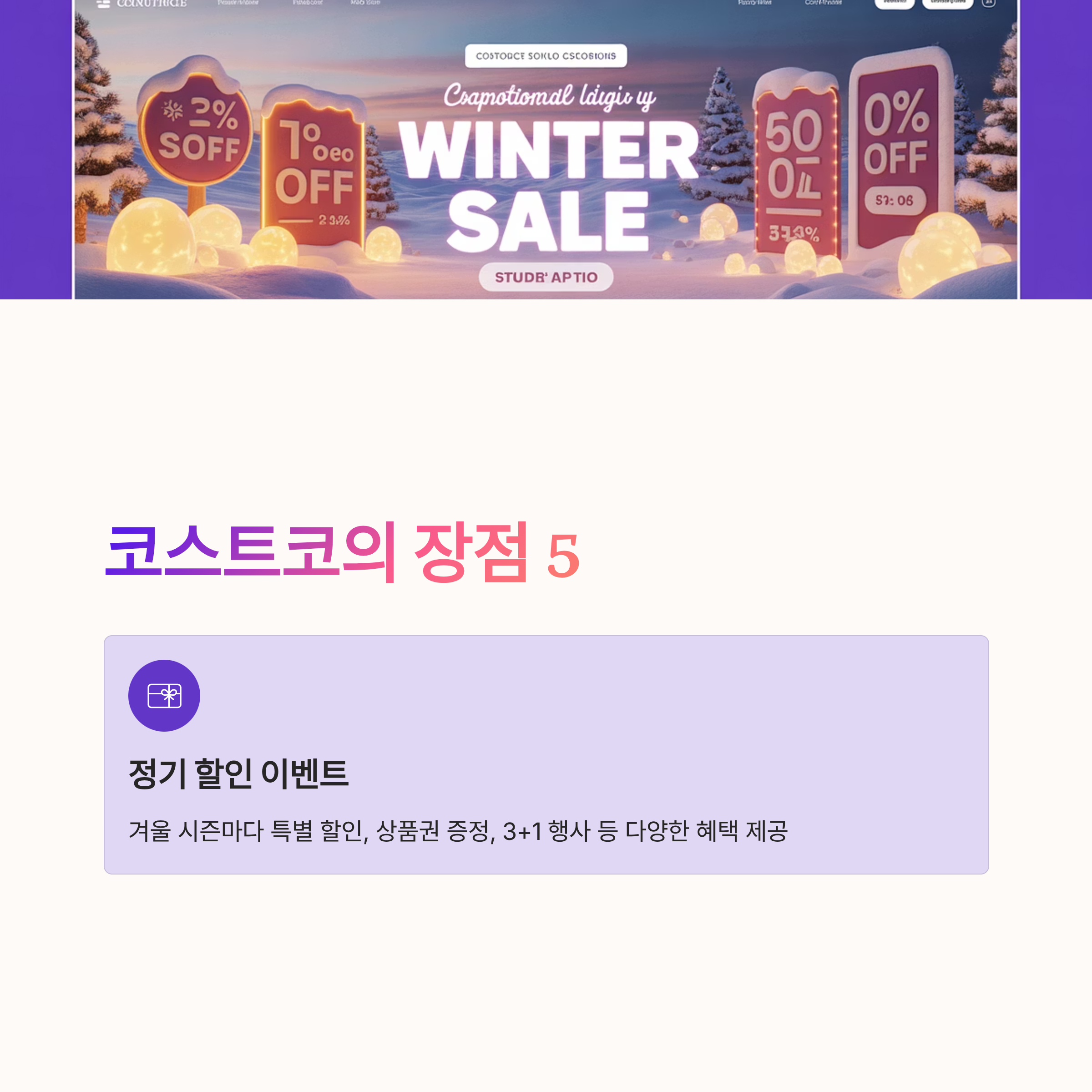 겨울 시즌마다 특별 할인 상품권 증정 3+1 행사 등 다양한 혜택이 제공된다.