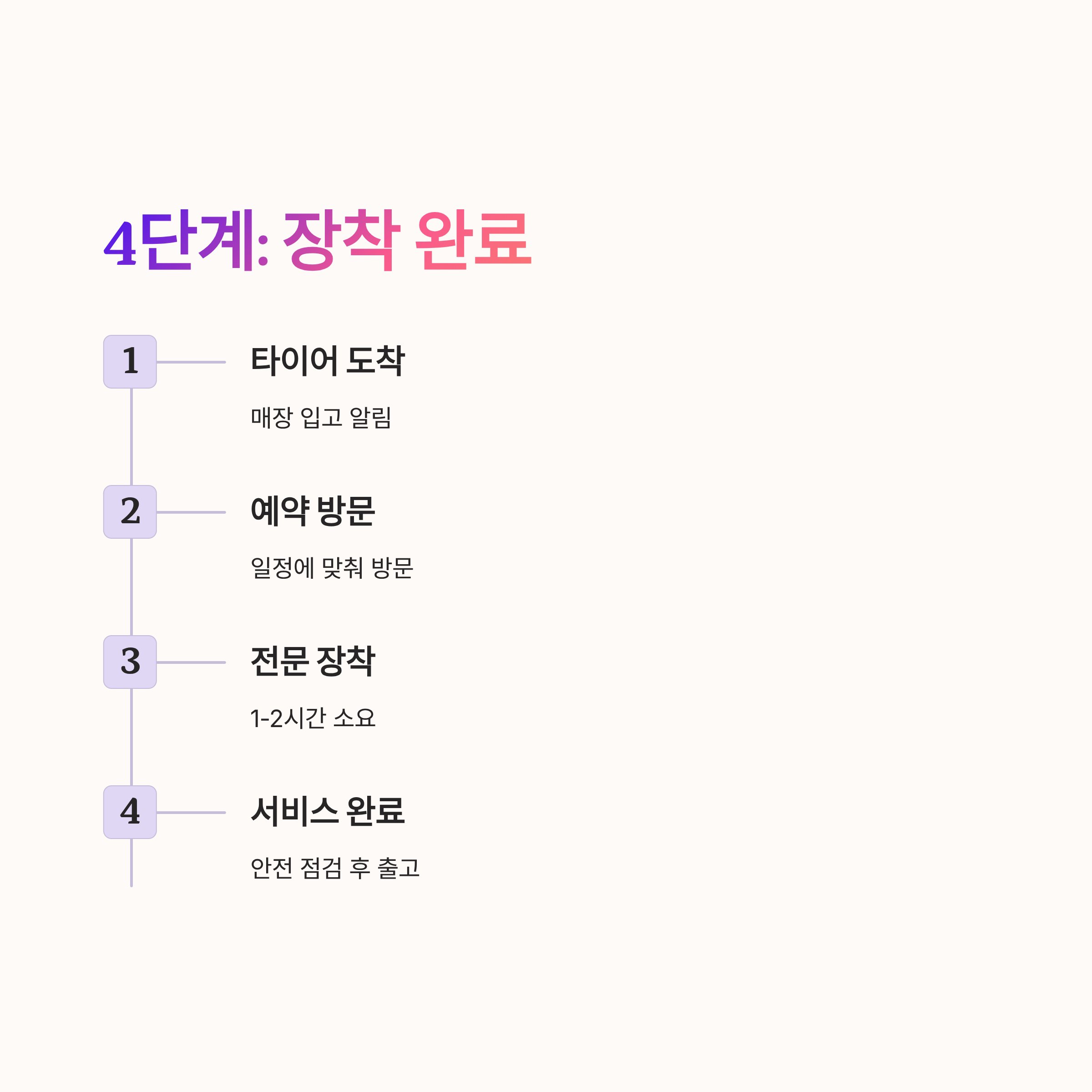 4 타이어가 매장에 도착하면 예약 일정에 맞춰 방문하여 장착을 완료한다.
