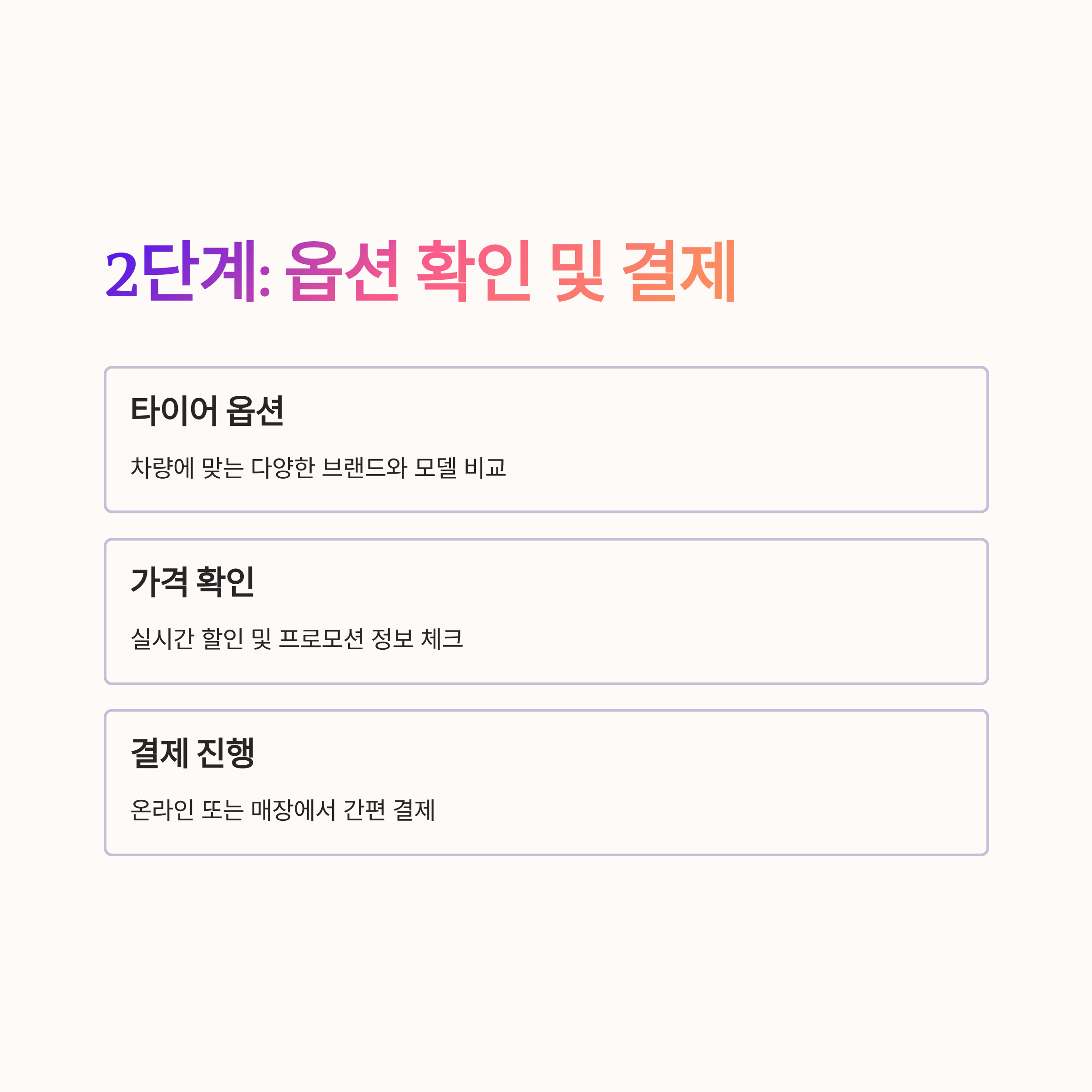 2 차량에 맞는 타이어 옵션과 가격을 확인한 뒤 결제한다.