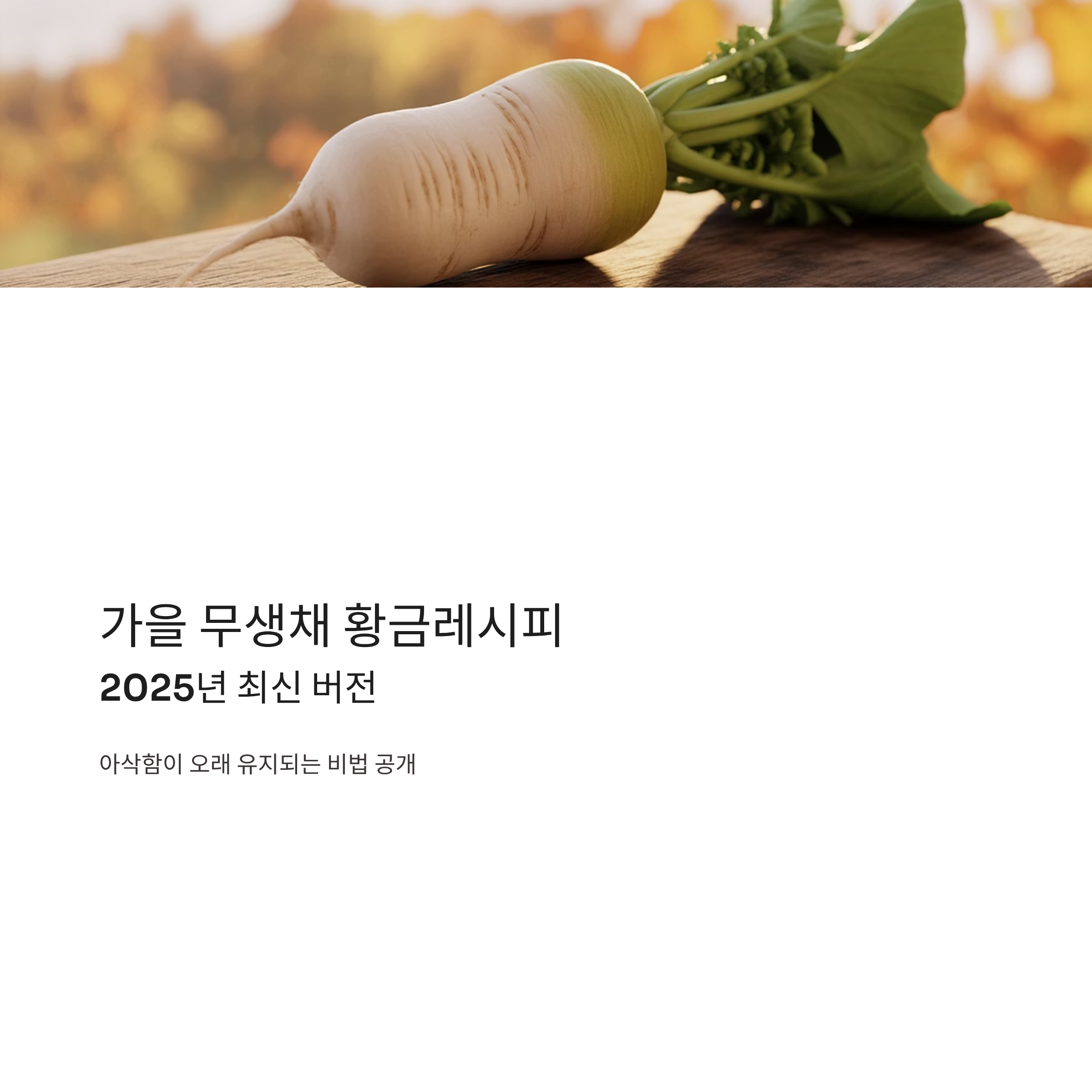 결론적으로 가을무생채는 제철 무의 달큰함과 아삭함을 살린 최고의 밑반찬이다. 황금비율로 양념을 조합하고 절임과 버무림 순서를 지키면 누구나 실패 없이 맛집 수준의 무생채를 완성할 수 있다.