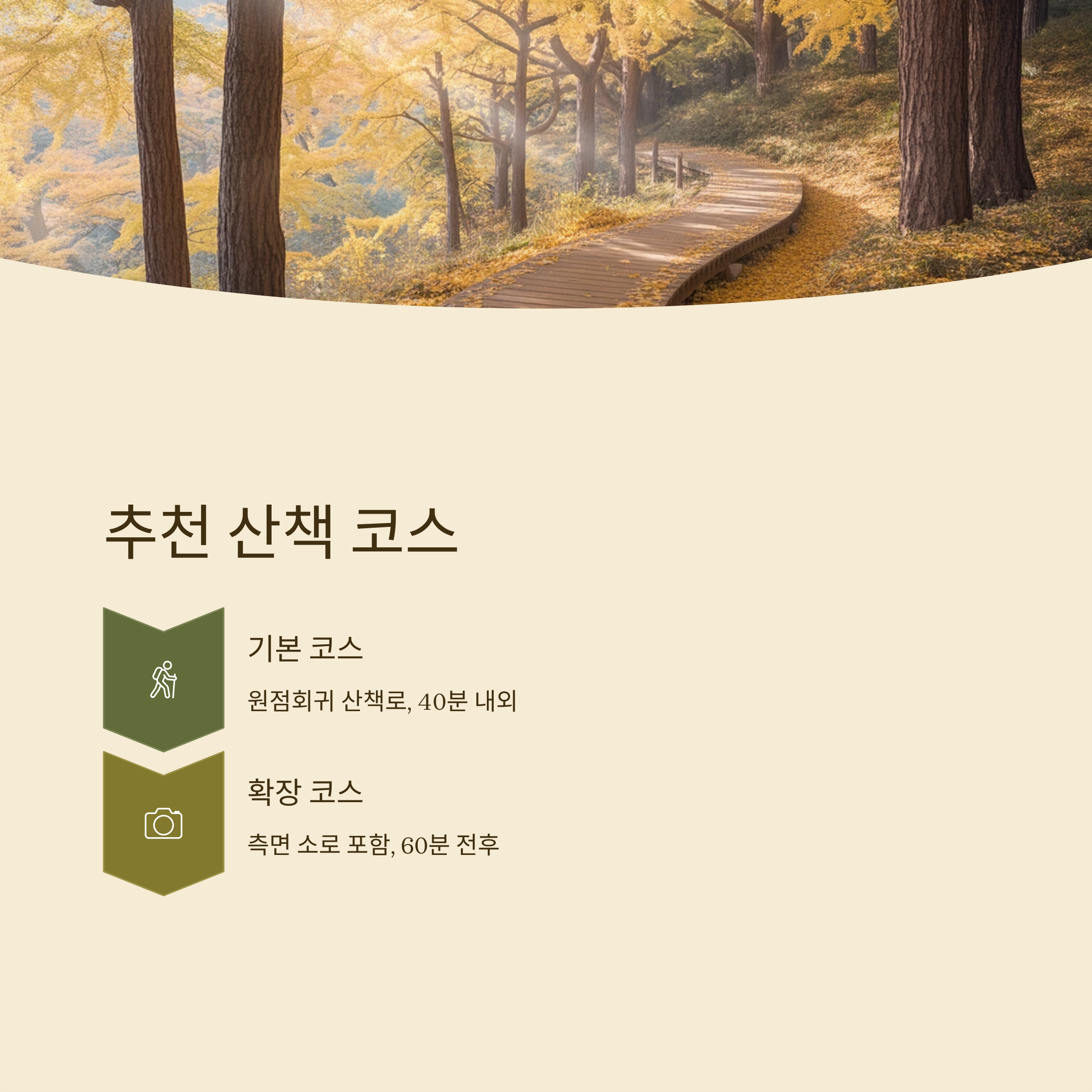 숲 내부에서는 짧은 코스보다 확장 소로를 활용해 촬영 포인트 확보