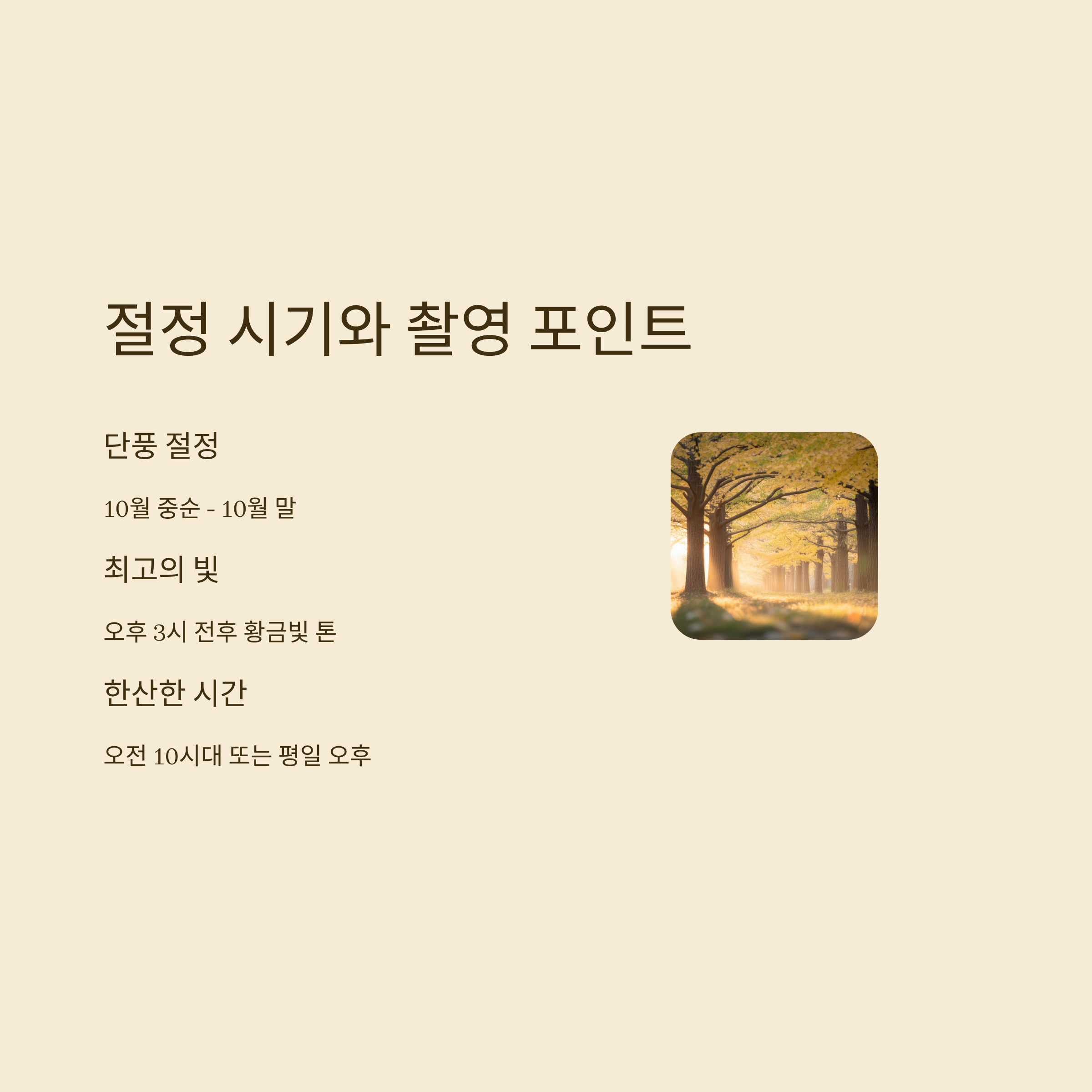 오전 10시부터 11시 30분 은행나무숲 산책과 촬영