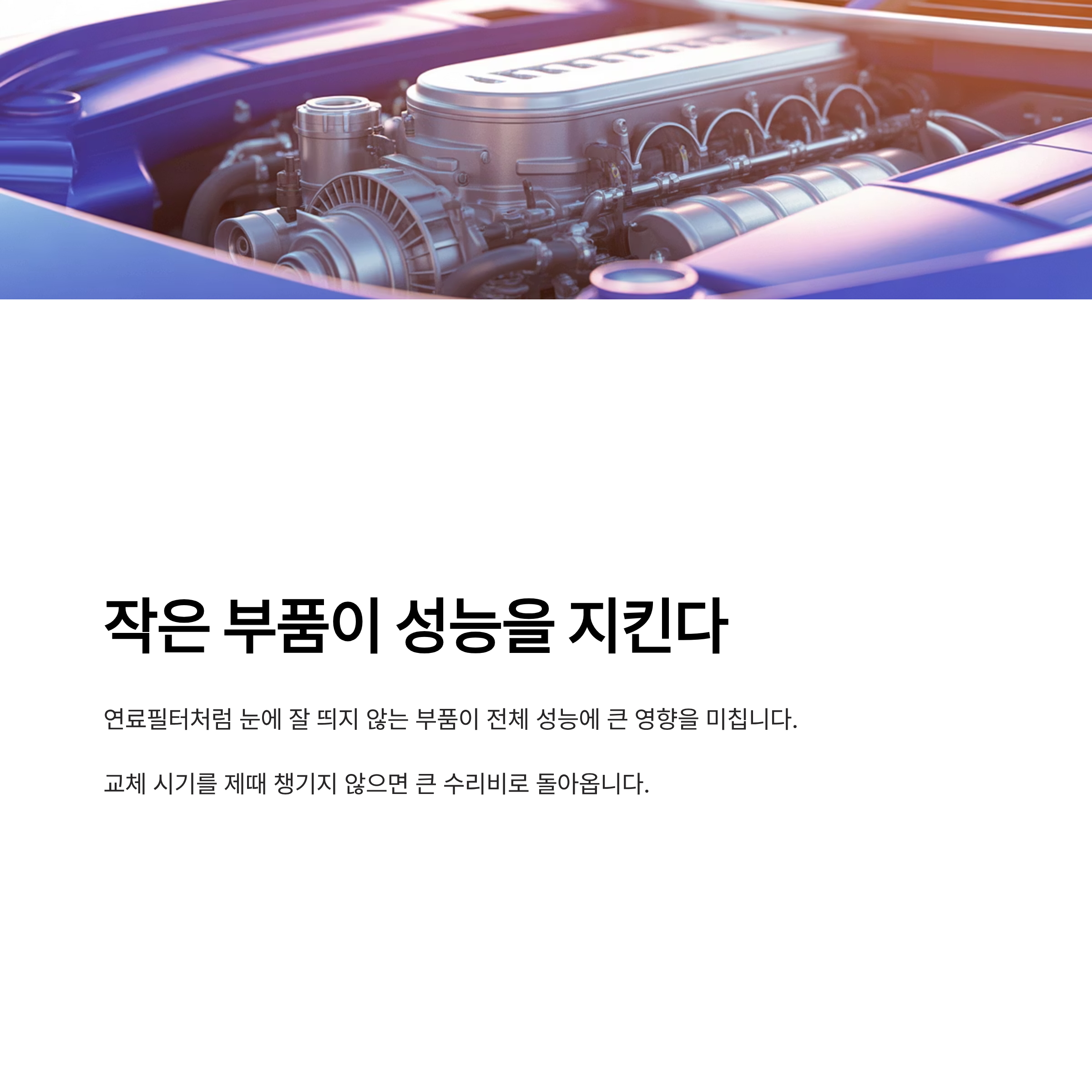 작은 부품 하나가 자동차 성능의 80%를 좌우합니다.