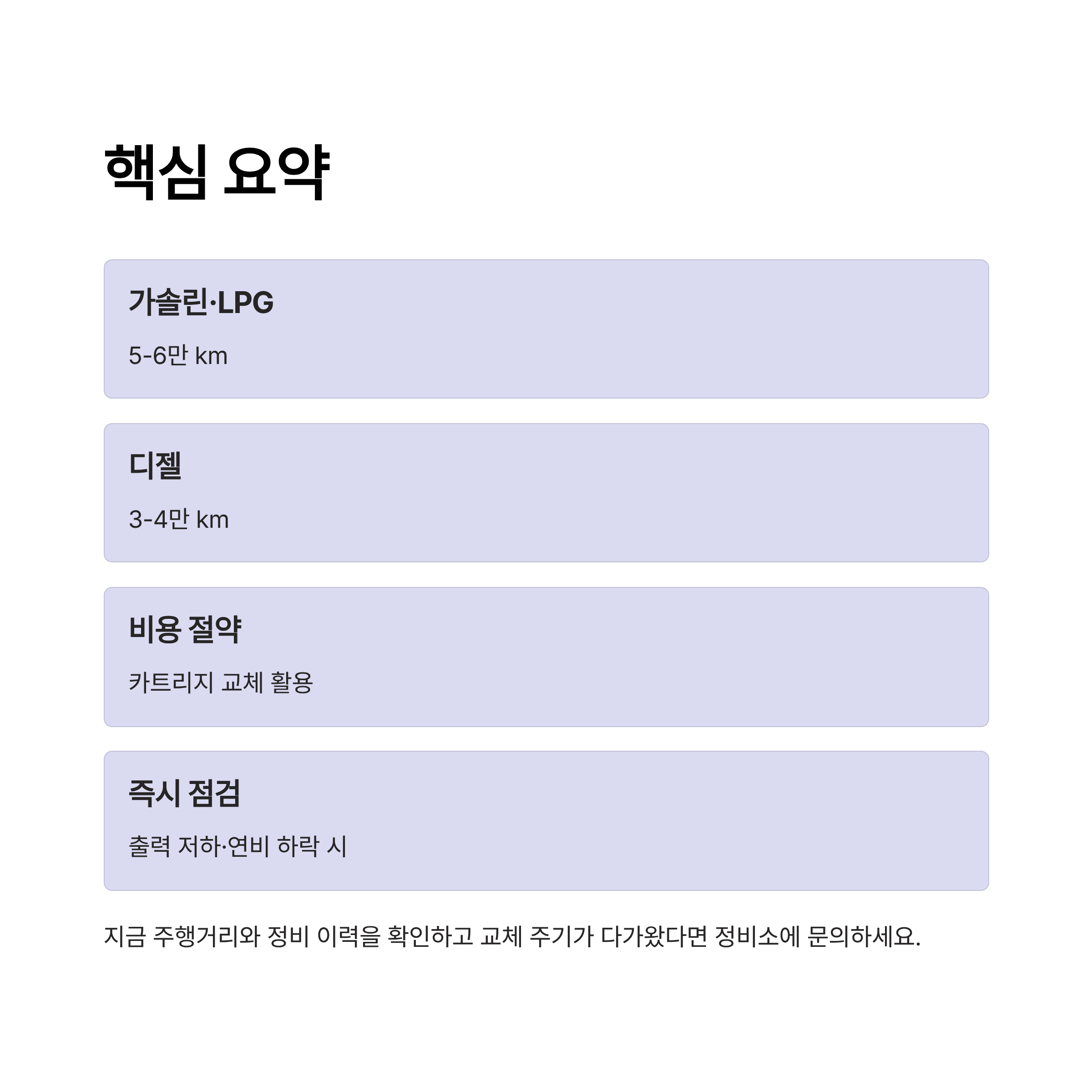 출력 저하·연비 하락 시 반드시 교체 점검