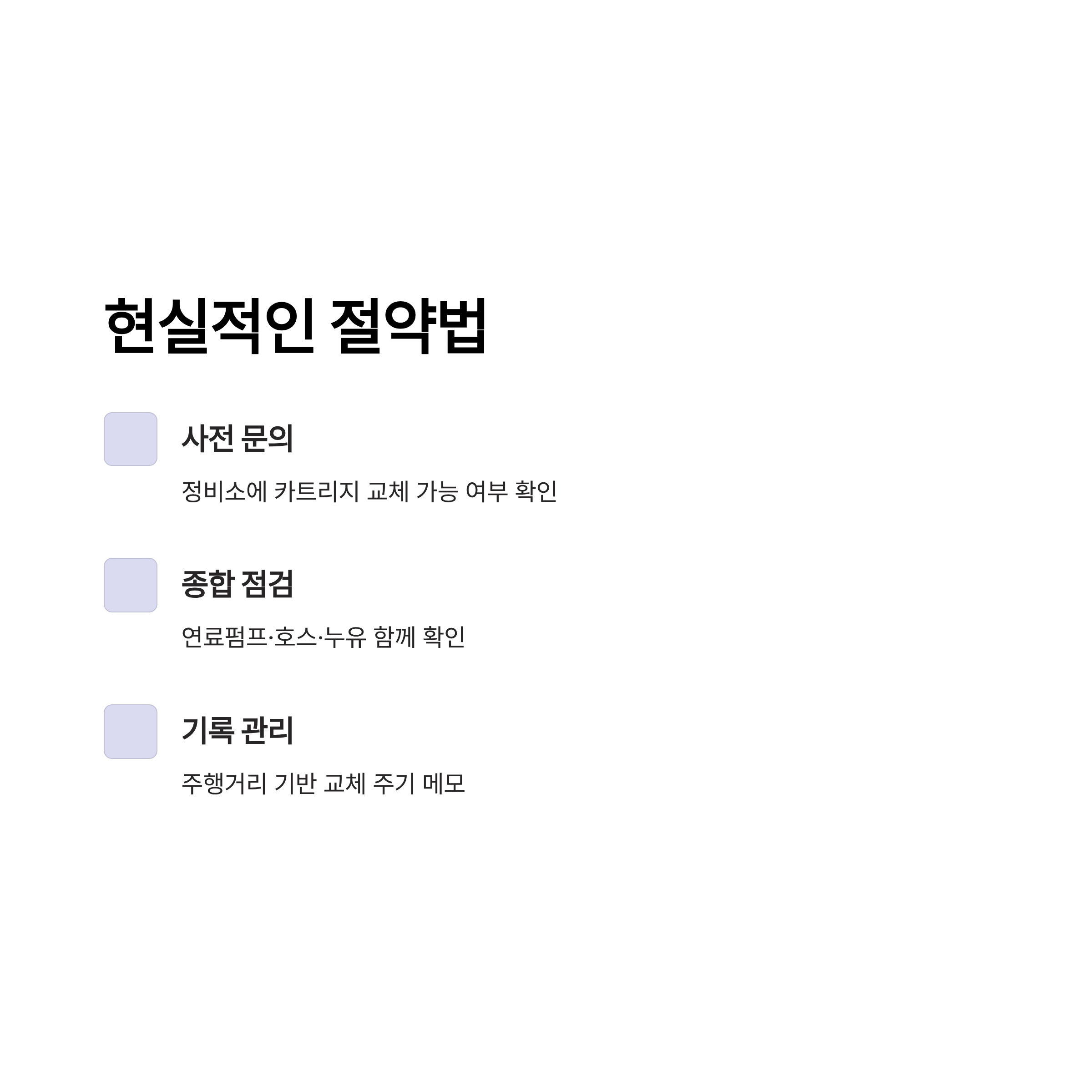 정비소 방문 전 전화로 “카트리지만 교체 가능한지” 꼭 문의하기