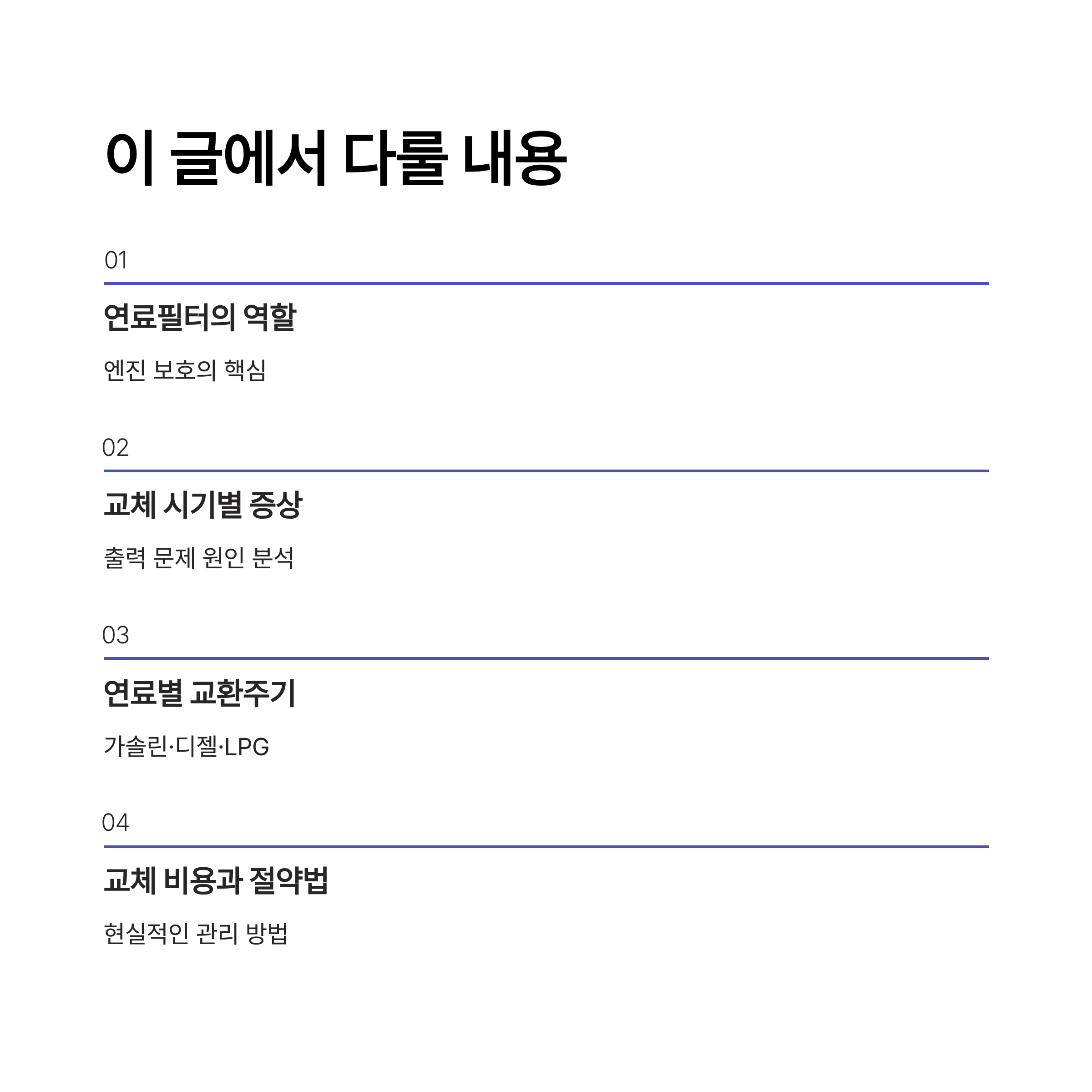 3️⃣ 연료별 교환주기 – 가솔린, 디젤, LPG 차량별 차이점