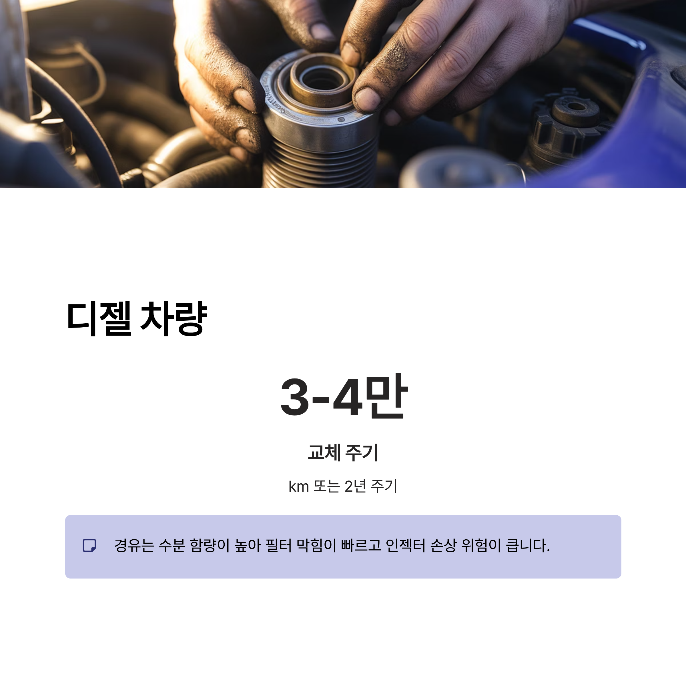 디젤 차량: 3만~4만 km 또는 2년 주기로 교체