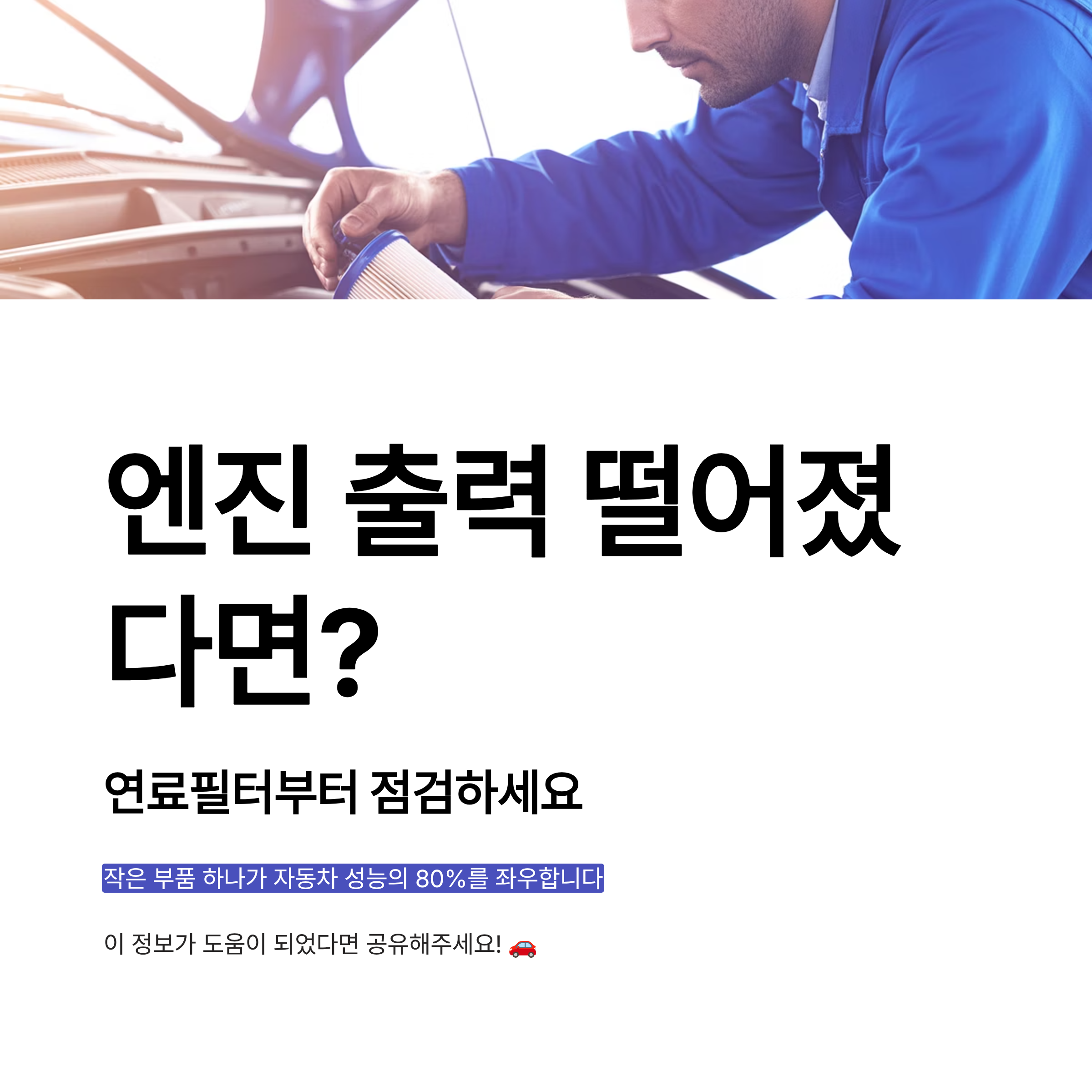 > “엔진 출력이 떨어졌다면, 복잡하게 생각하지 말고 연료필터부터 점검하세요.”
