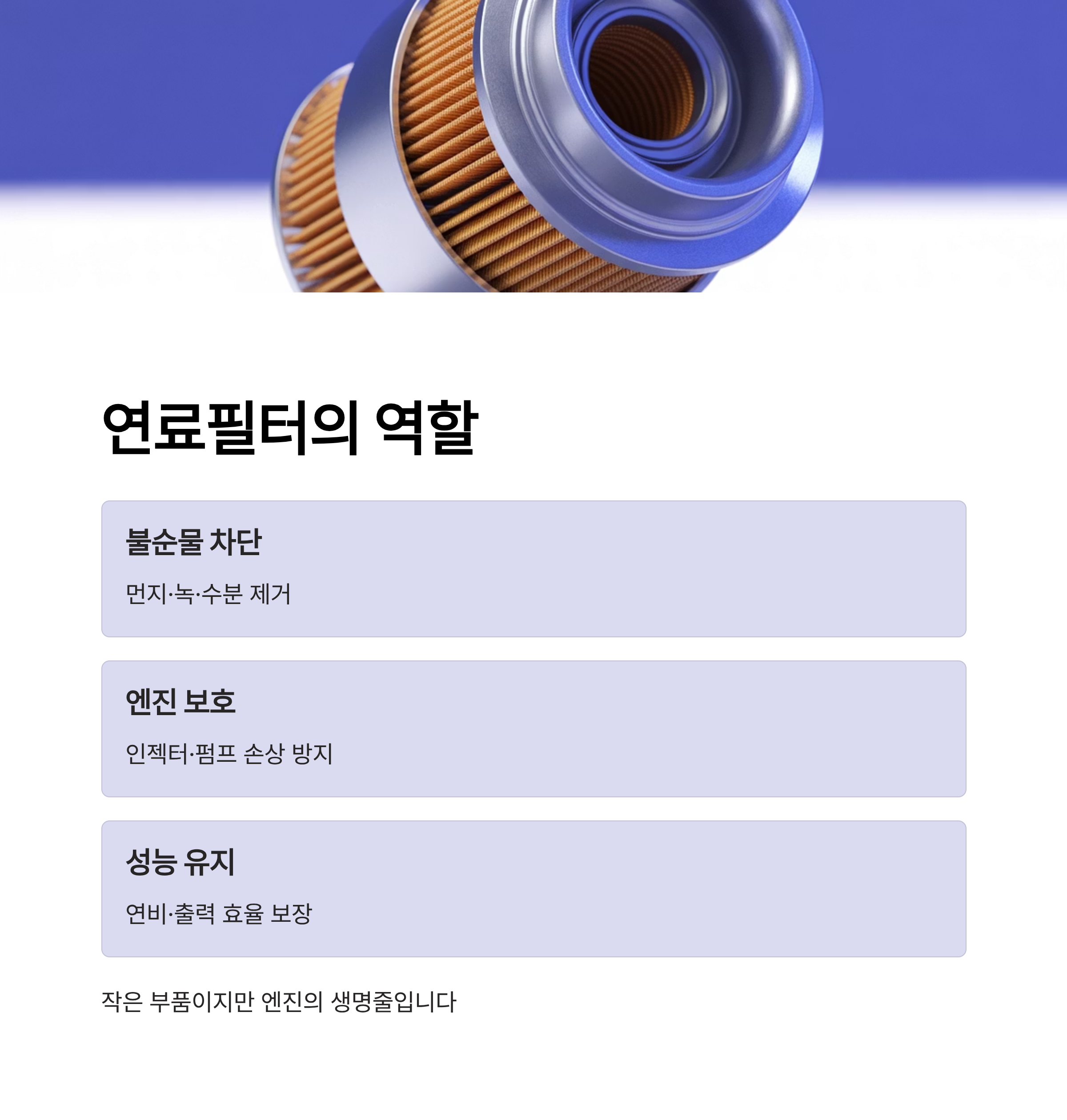 1️⃣ 연료필터의 역할 – 작은 부품이지만 엔진의 생명줄