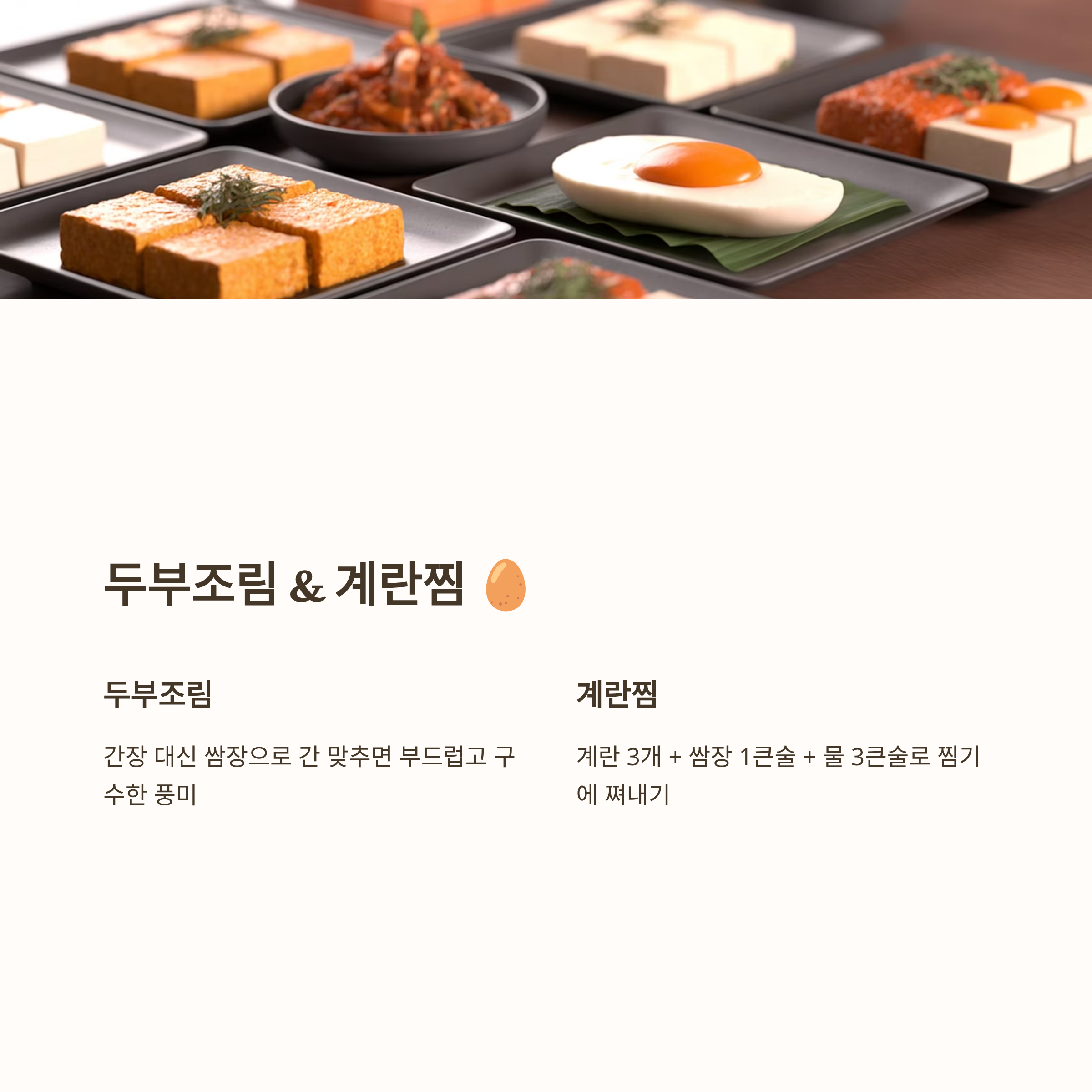 두부조림: 간장 대신 쌈장으로 간을 맞추면 부드럽고 구수한 풍미가 살아납니다.