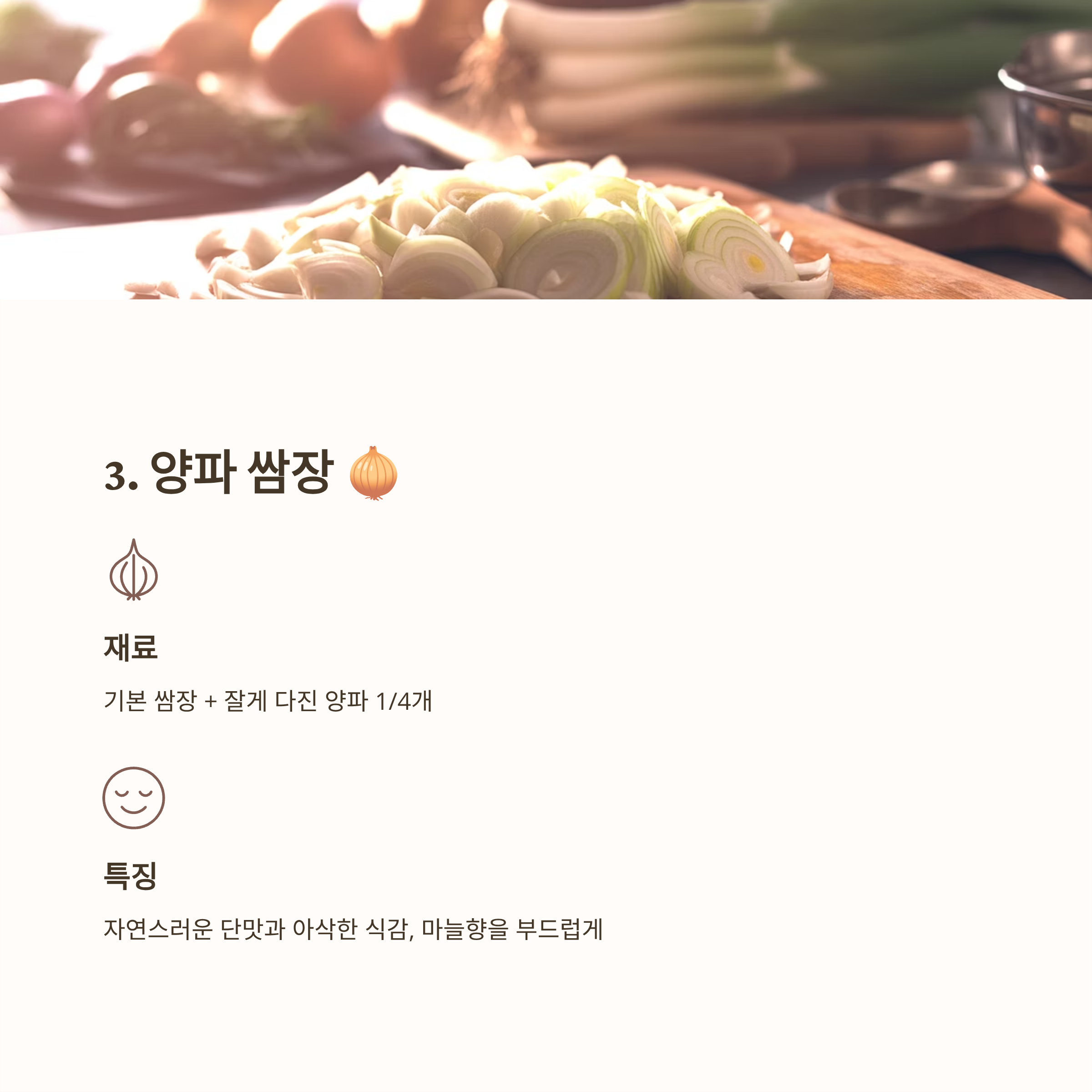 3️⃣ 다양한 응용 쌈장 레시피 (입맛 따라 선택!)