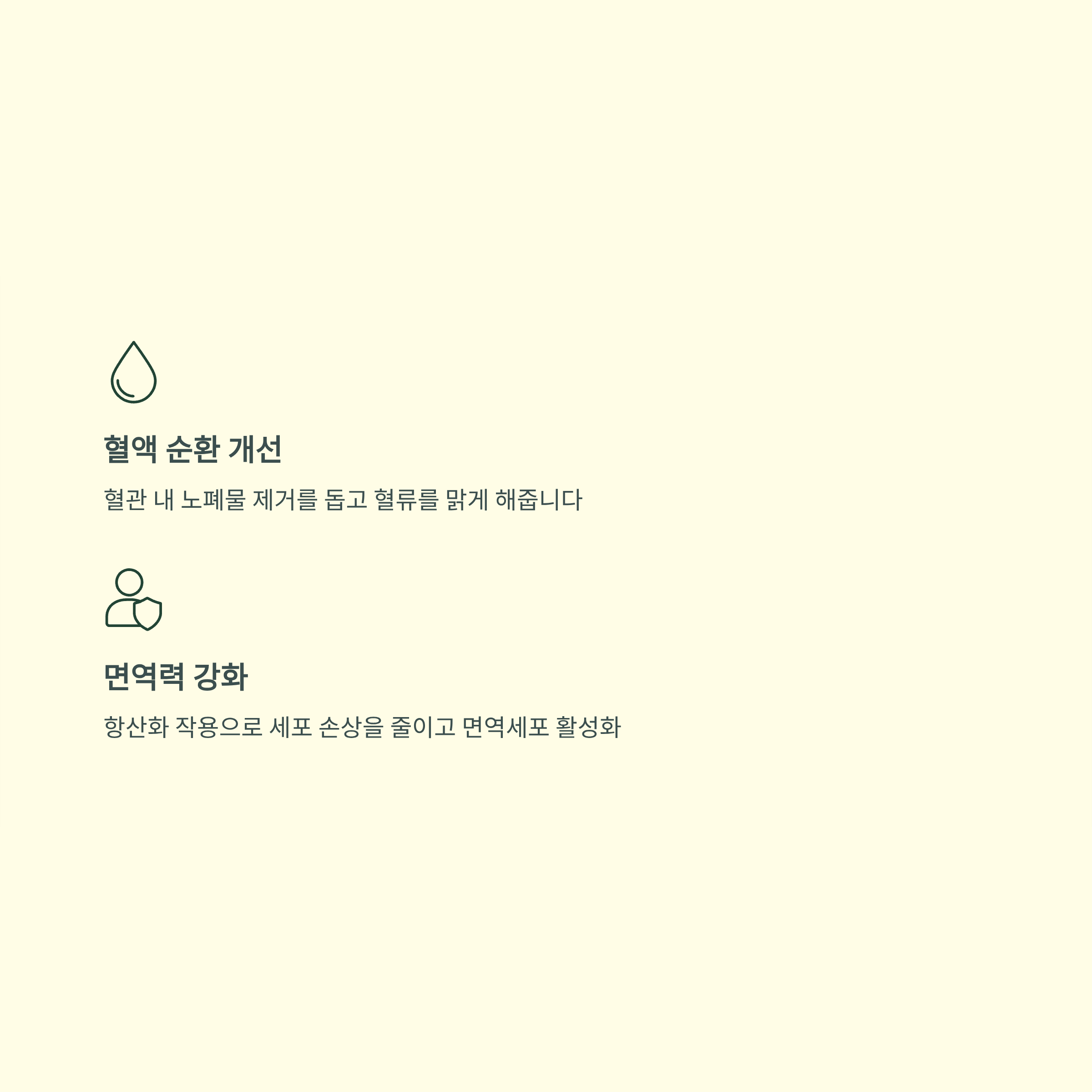 3. 혈액 순환 개선: 혈관 내 노폐물 제거를 돕고, 혈류를 맑게 해줍니다.