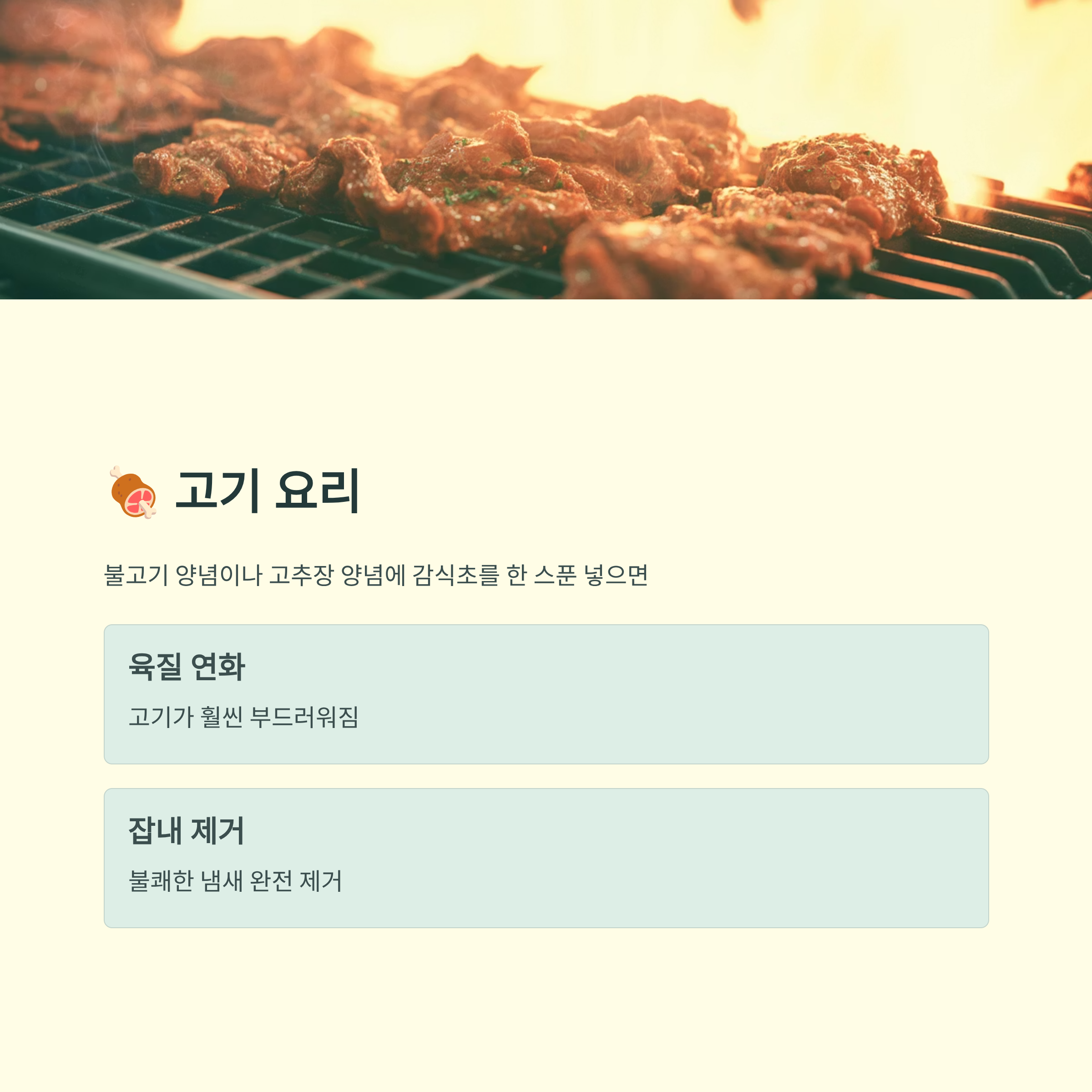 불고기 양념이나 고추장 양념에 감식초를 한 스푼 넣으면