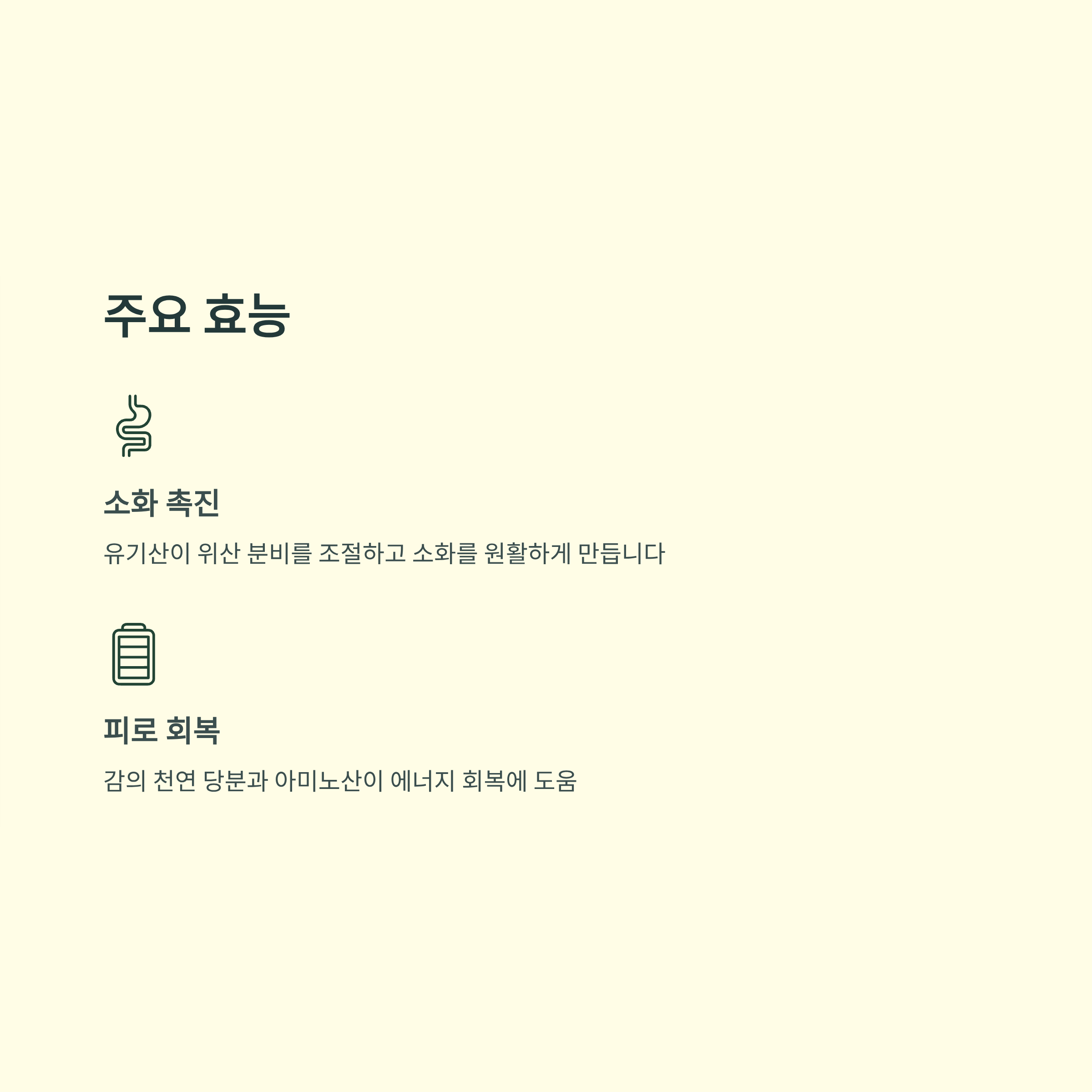 2. 피로 회복: 감의 천연 당분과 아미노산이 에너지 회복에 도움.