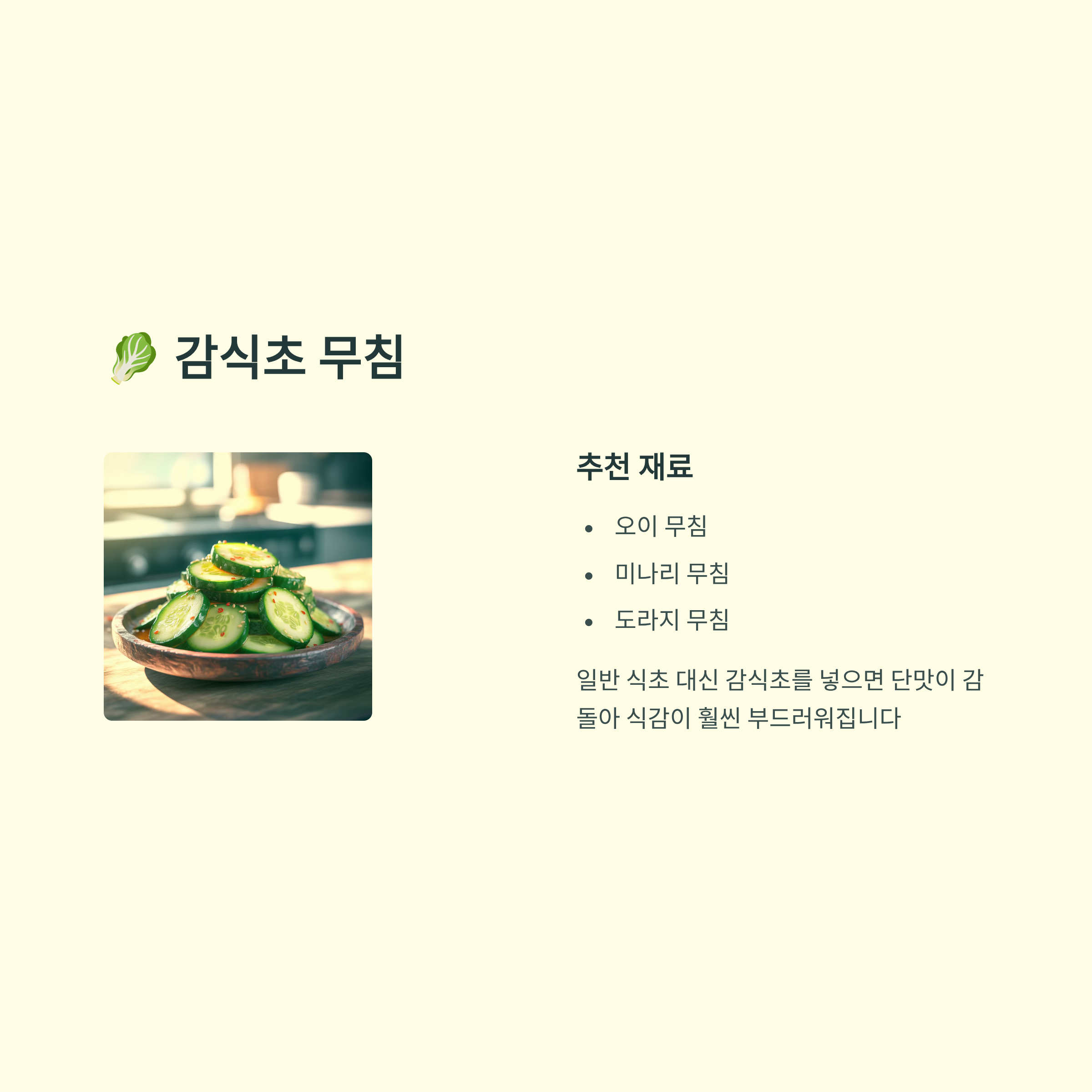 오이, 미나리, 도라지 무침 등에 일반 식초 대신 감식초를 넣으면