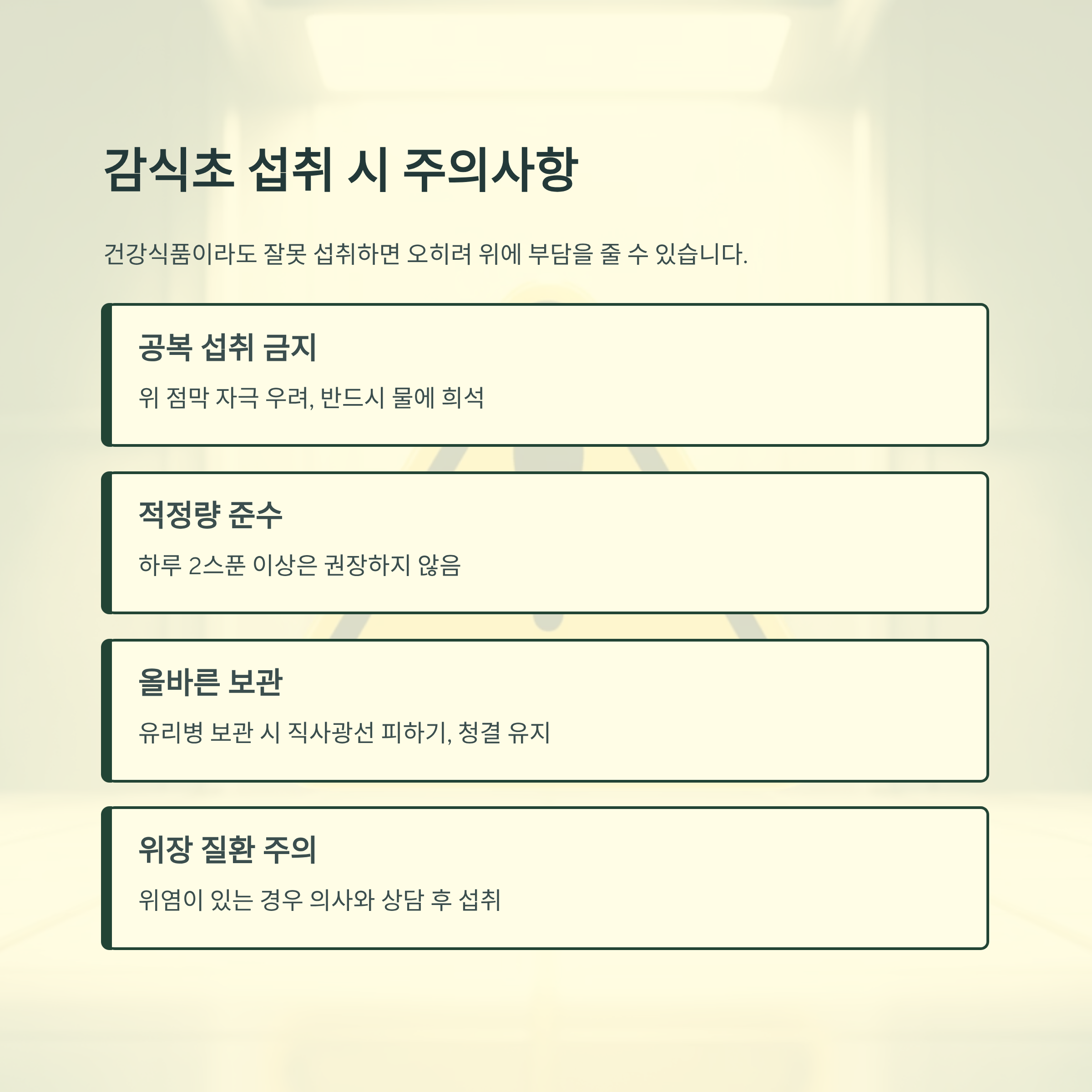 감식초는 장기 복용보다는 하루 1~2회, 소량씩 꾸준히 마시는 것이 중요합니다.