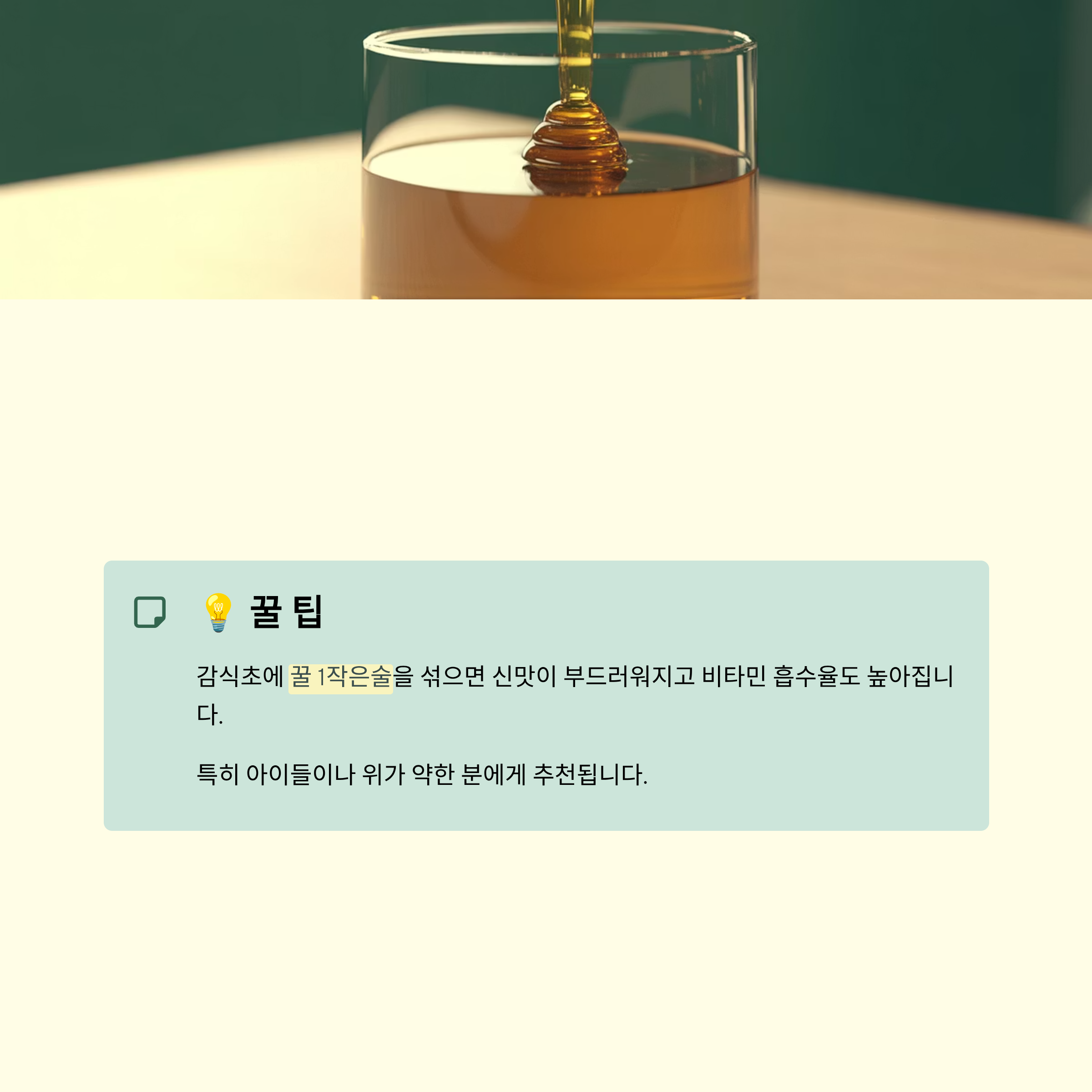 감식초에 꿀 1작은술을 섞으면 신맛이 부드러워지고, 비타민 흡수율도 높아집니다.
