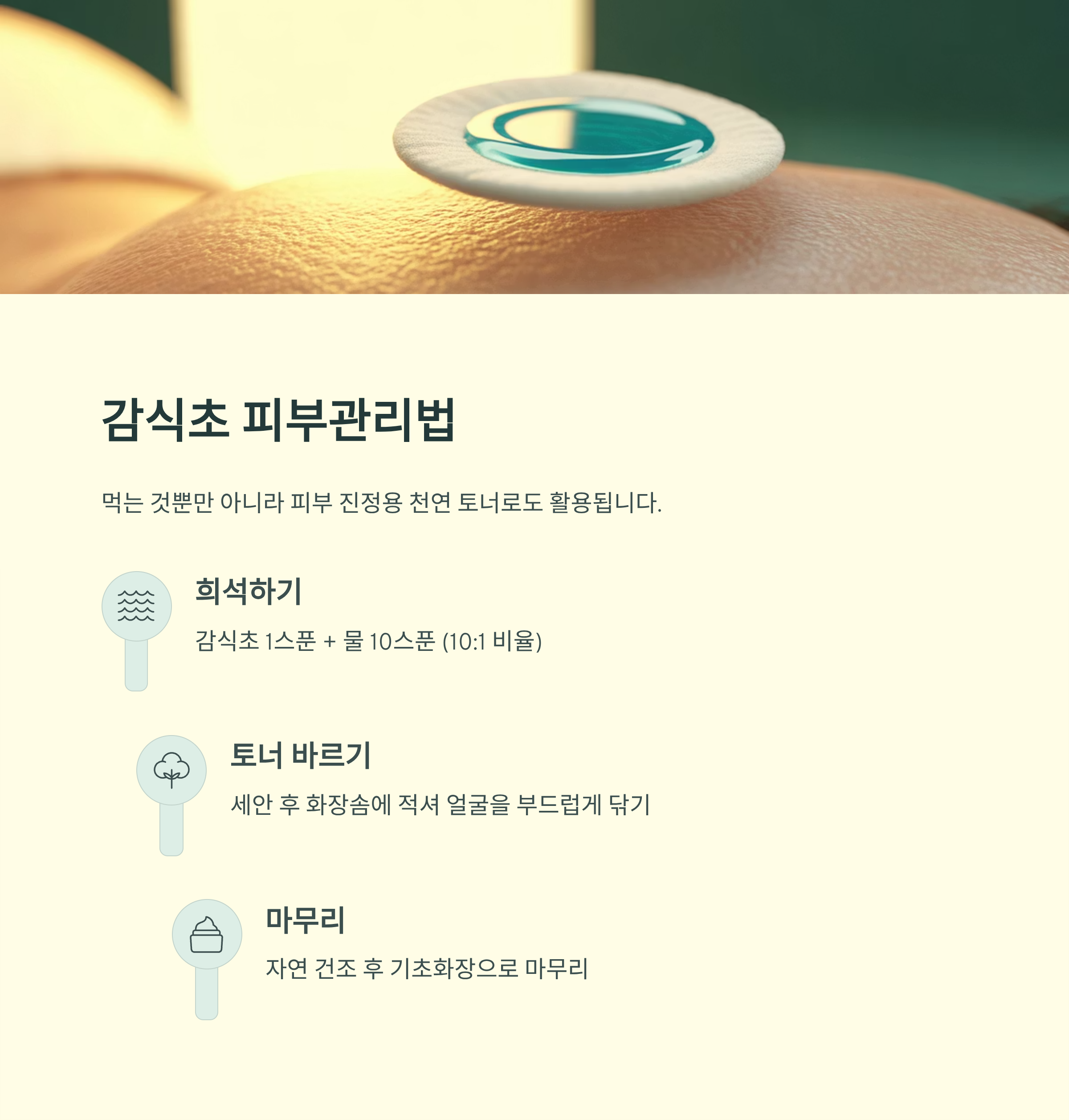 감식초는 먹는 것뿐만 아니라 피부 진정용 천연 토너로도 활용됩니다.