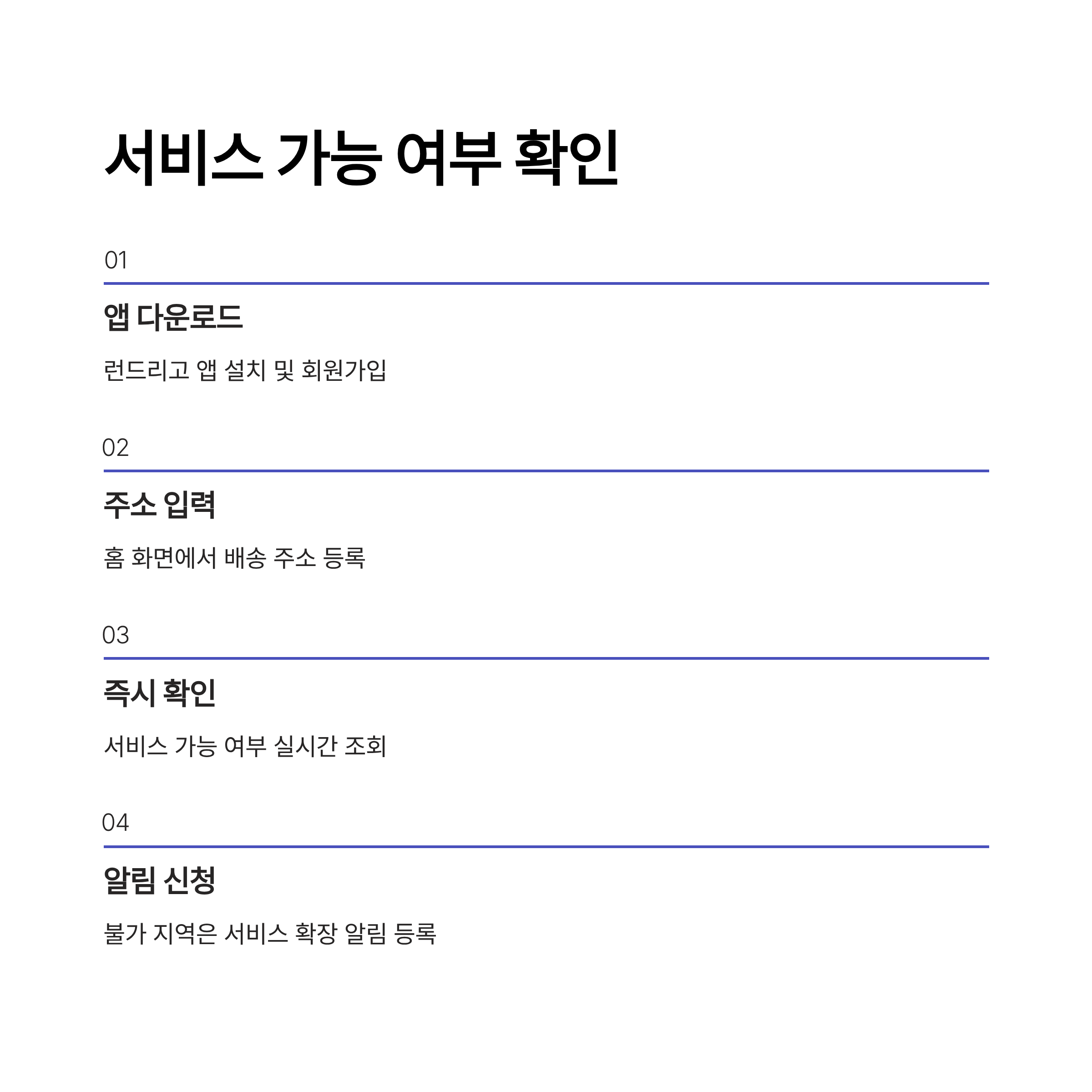 홈 화면에서 주소를 입력하면 서비스 가능 여부를 즉시 확인할 수 있습니다.