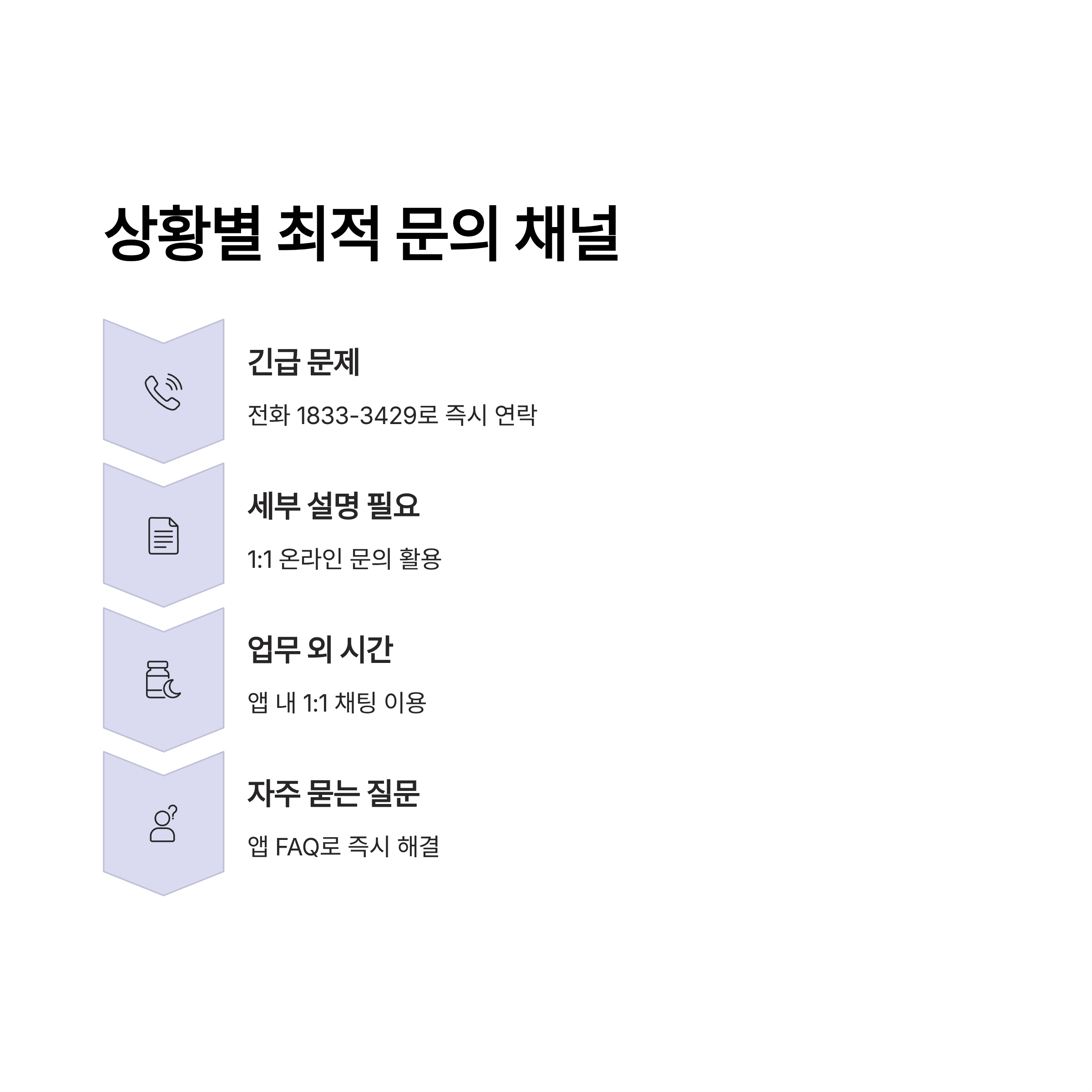 자주 묻는 질문의 경우 앱 내 FAQ나 홈페이지를 확인하면 즉시 해결되어 시간을 절약할 수 있습니다.