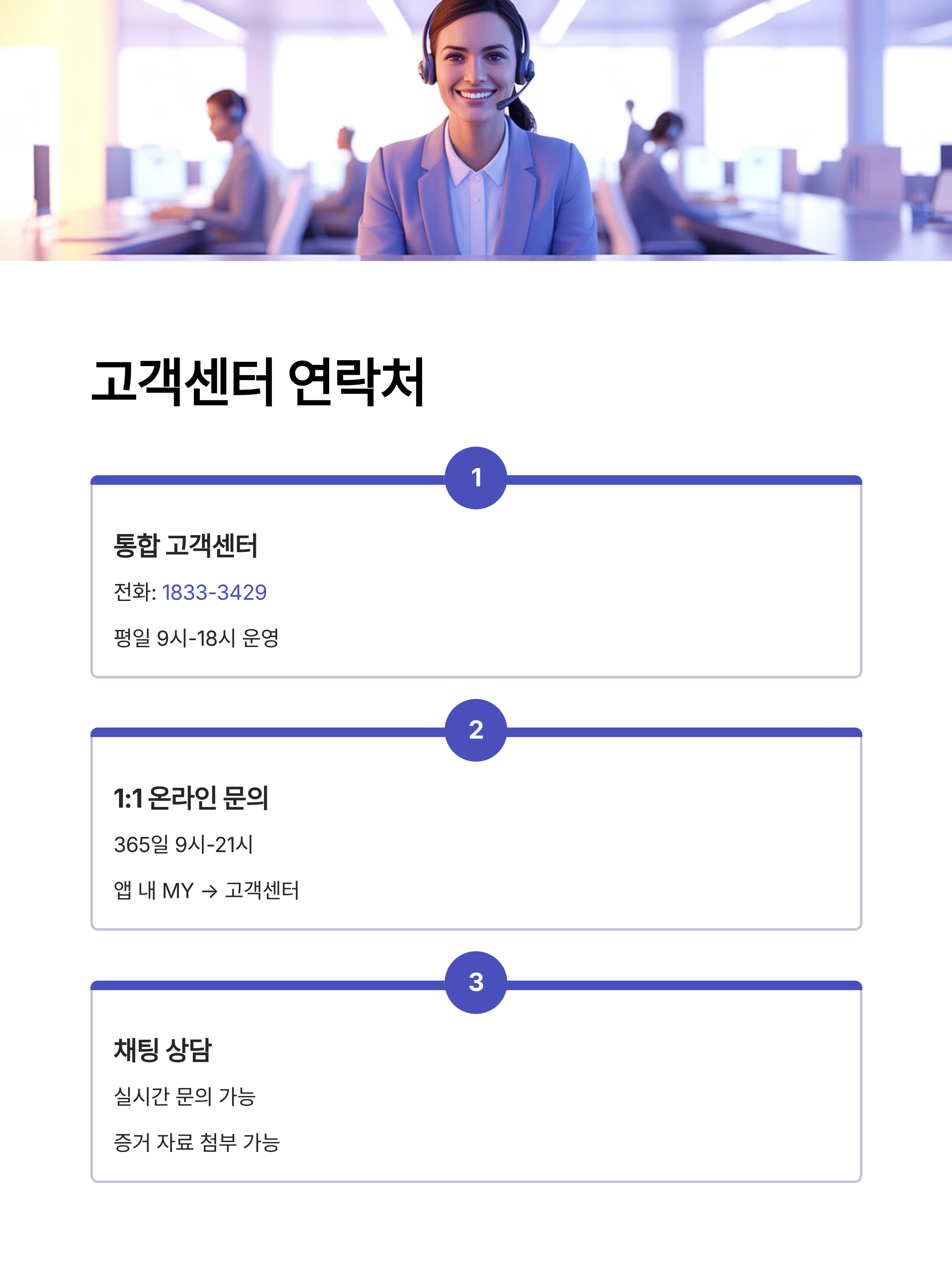 고객센터 전화나 1:1 채팅으로 추가 설명을 제공합니다.