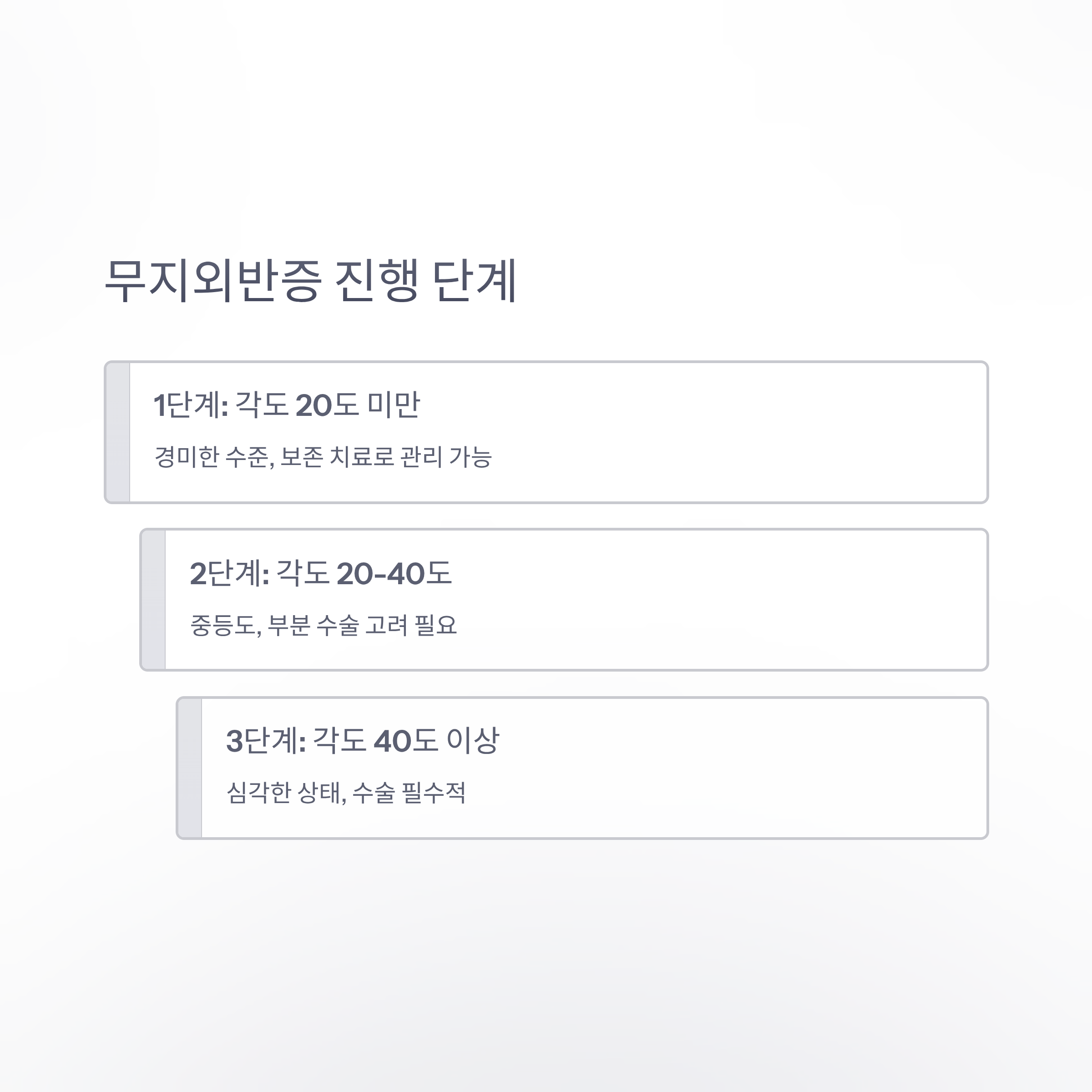 3단계: 각도 40도 이상 (심각, 수술 필수)